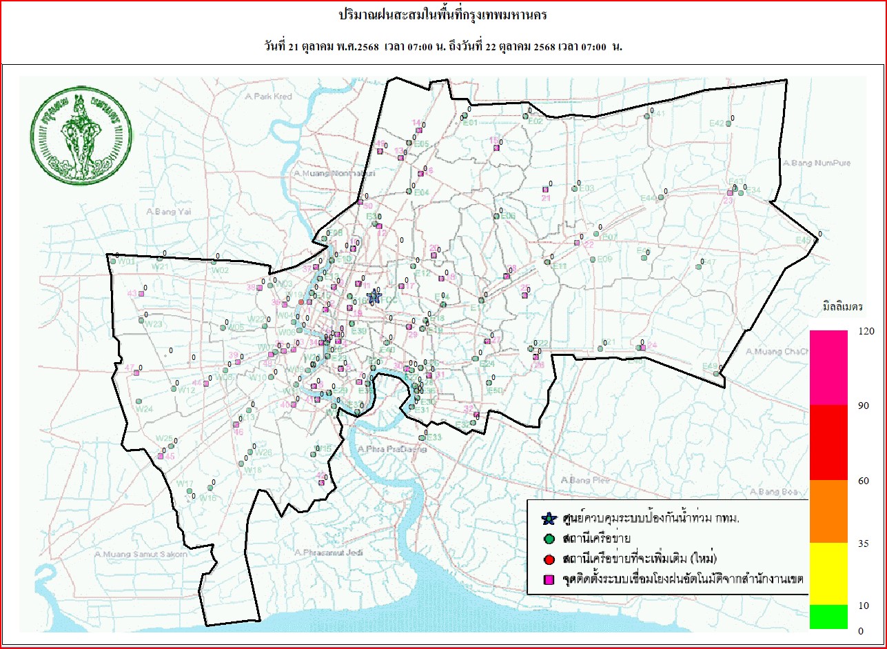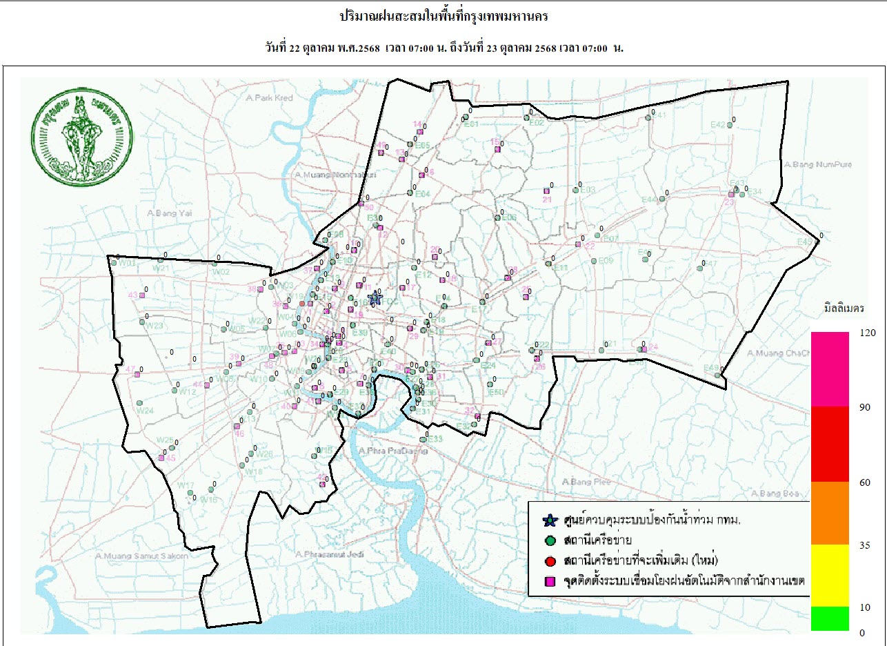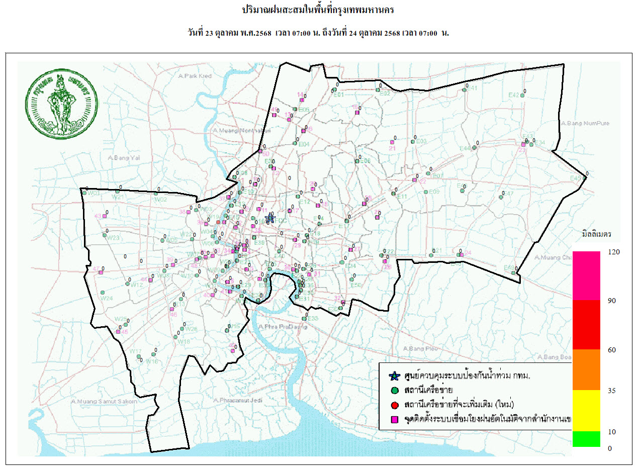 วันที่ 24 ตุลาคม 2568 เวลา 18.00 น. / พื้นที่ กทม. ไม่พบกลุ่มฝน / อุณหภูมิที่สำนักการระบายน้ำ 31 องศาเซลเซียส ความชื้นสัมพัทธ์ 59%