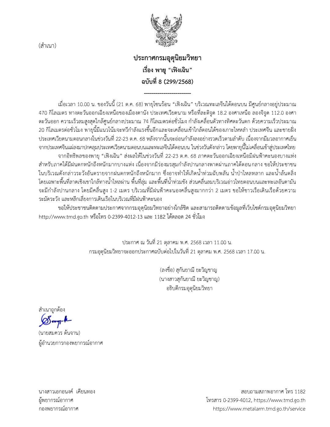 วันที่ 21 ตุลาคม 2568 เวลา 20.00 น. / พื้นที่ กทม. ไม่พบกลุ่มฝน / อุณหภูมิที่สำนักการระบายน้ำ 31 องศาเซลเซียส ความชื้นสัมพัทธ์ 65%