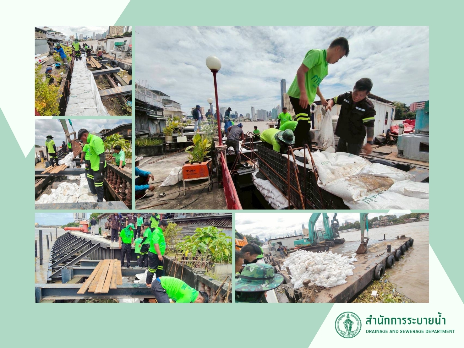 สำนักการระบายน้ำ โดยกองระบบท่อระบายน้ำ จัดเจ้าหน้าที่ลงพื้นที่เร่งเสริมแนวป้องกันน้ำหนุนบริเวณจุดเสี่ยงต่ำ ถนนทรงวาด ช่วงหน้าบริษัทจิระมงคล เขตสัมพันธวงศ์ โดยดำเนินการเรียงกระสอบทรายตลอดแนวเขื่อนชั่วคราว ความยาวประมาณ 16 เมตร รวมกระสอบทรายที่ใช้กว่า 1,800 ใบ