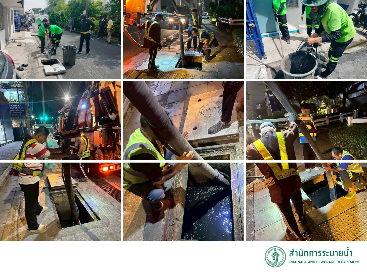 สำนักการระบายน้ำ (สนน.) โดยกองระบบท่อระบายน้ำ จัดเจ้าหน้าที่ลงพื้นที่ตรวจสอบ เก็บขยะ และล้างทำความสะอาดท่อระบายน้ำ–รางรับน้ำฝน เพื่อให้การระบายน้ำทำงานได้อย่างคล่องตัว ไม่อุดตัน และรองรับปริมาณฝนที่อาจตกหนักในช่วงฤดูฝนนี้
