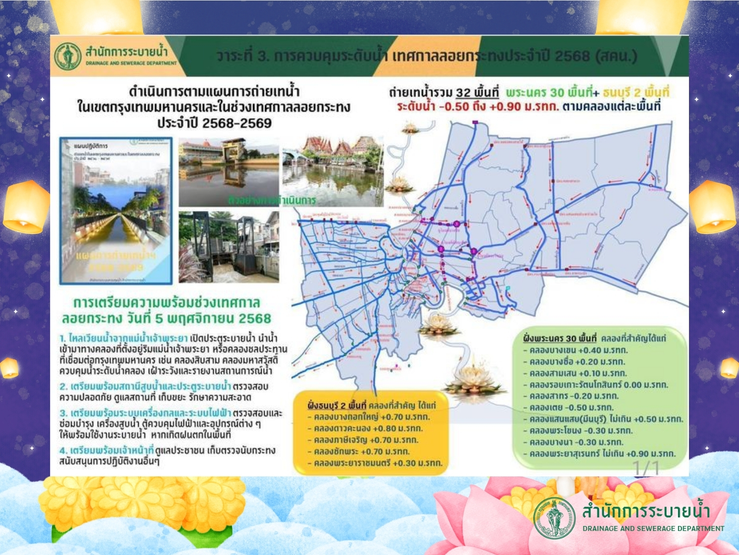 (28 ต.ค.68) เวลา 13.30 น. สำนักการระบายน้ำ เข้าร่วมการประชุมเตรียมความพร้อมในการป้องกันและบรรเทาสาธารณภัยช่วงเทศกาลลอยกระทง ประจำปี 2568 ณ ห้องสุทัศน์ ชั้น 2 ศาลาว่าการกรุงเทพมหานคร เสาชิงช้า โดยมี นายธนิต ตันบัวคลี่ รองปลัดกรุงเทพมหานคร ในฐานะผู้อำนวยการศูนย์ติดตามสถานการณ์กรุงเทพมหานคร (ศตส.กทม.) เป็นประธานการประชุม