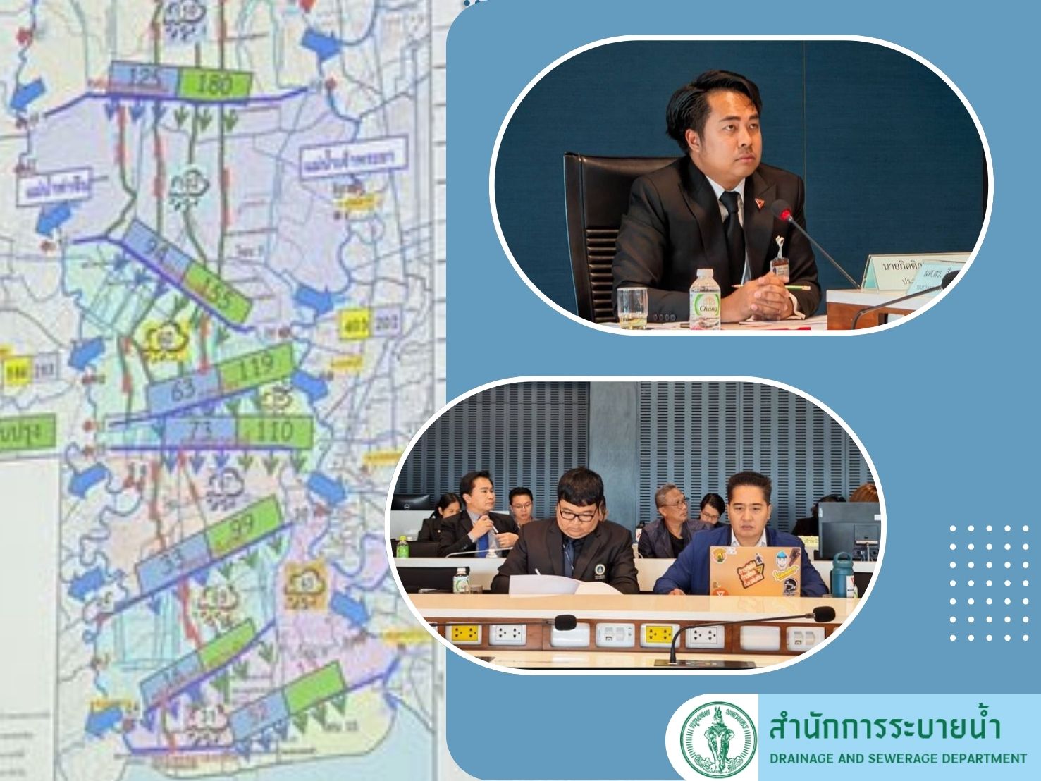 (20 พ.ย.68) เวลา 09.30 น. นางสาวเกศรัชฎา กลั่นกรอง รองผู้อำนวยการสำนักการระบายน้ำ พร้อมด้วย นายณทศพล จันทร์ลอย ผู้อำนวยการสำนักงานพัฒนาระบบระบายน้ำ และผู้บริหารสำนักการระบายน้ำ ได้เข้าร่วมประชุมคณะกรรมาธิการการบริหารจัดการทรัพยากรน้ำ สภาผู้แทนราษฎร ณ ห้องประชุมรัฐสภา เพื่อนำเสนอและรับฟังข้อซักถาม ให้ข้อมูลประกอบการพิจารณาเกี่ยวกับการบริหารจัดการป้องกันและแก้ไขปัญหาน้ำท่วมในพื้นที่กรุงเทพมหานครฝั่งตะวันตกของแม่น้ำเจ้าพระยา
