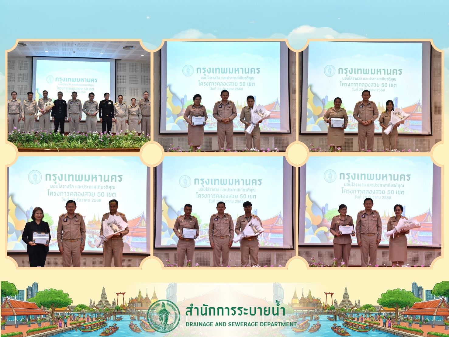(29 ธ.ค.68) เวลา 13.30 น. ณ ห้องประชุมใหญ่ (Auditorium) ศูนย์การศึกษาและอนุรักษ์สิ่งแวดล้อมบางซื่อ นายณรงค์ เรืองศรี ปลัดกรุงเทพมหานคร เป็นประธานในพิธีมอบโล่รางวัลและประกาศเกียรติคุณแก่หน่วยงานและชุมชนที่มีผลการดำเนินงานดีเด่น ภายใต้ โครงการคลองสวย 50 เขต