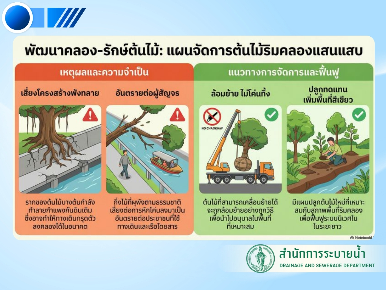 พัฒนาคลองแสนแสบอย่างรอบคอบ ดูแลต้นไม้ควบคู่โครงสร้าง เพื่อความปลอดภัยของประชาชน และเมืองที่น่าอยู่ในระยะยาว