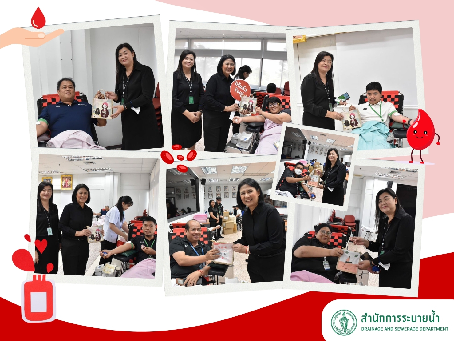 (10 ก.พ.69) นายศุภมิตร ลายทอง และนายชัชชญา ขำจันทร์ รองผู้อำนวยการสำนักการระบายน้ำ พร้อมด้วย นางปาจรีย์ องค์โชติยะกุล เลขานุการสำนักการระบายน้ำ ผู้บริหารและเจ้าหน้าที่สำนักการระบายน้ำ ตรวจเยี่ยมและให้กำลังใจแก่ข้าราชการ เจ้าหน้าที่สำนักการระบายน้ำ และหน่วยงานต่างๆ ที่มาร่วมบริจาคโลหิตให้กับวชิรพยาบาล เพื่อนำไปใช้ในการรักษาผู้ป่วยที่เสียเลือดจากอุบัติเหตุ หรือมีโรคที่ทำให้ไม่สามารถสร้างเม็ดเลือดได้เอง ณ ห้องประชุมนพพันธ์ ชั้น 3 สำนักการระบายน้ำ ศาลาว่าการกรุงเทพมหานคร ดินแดง
