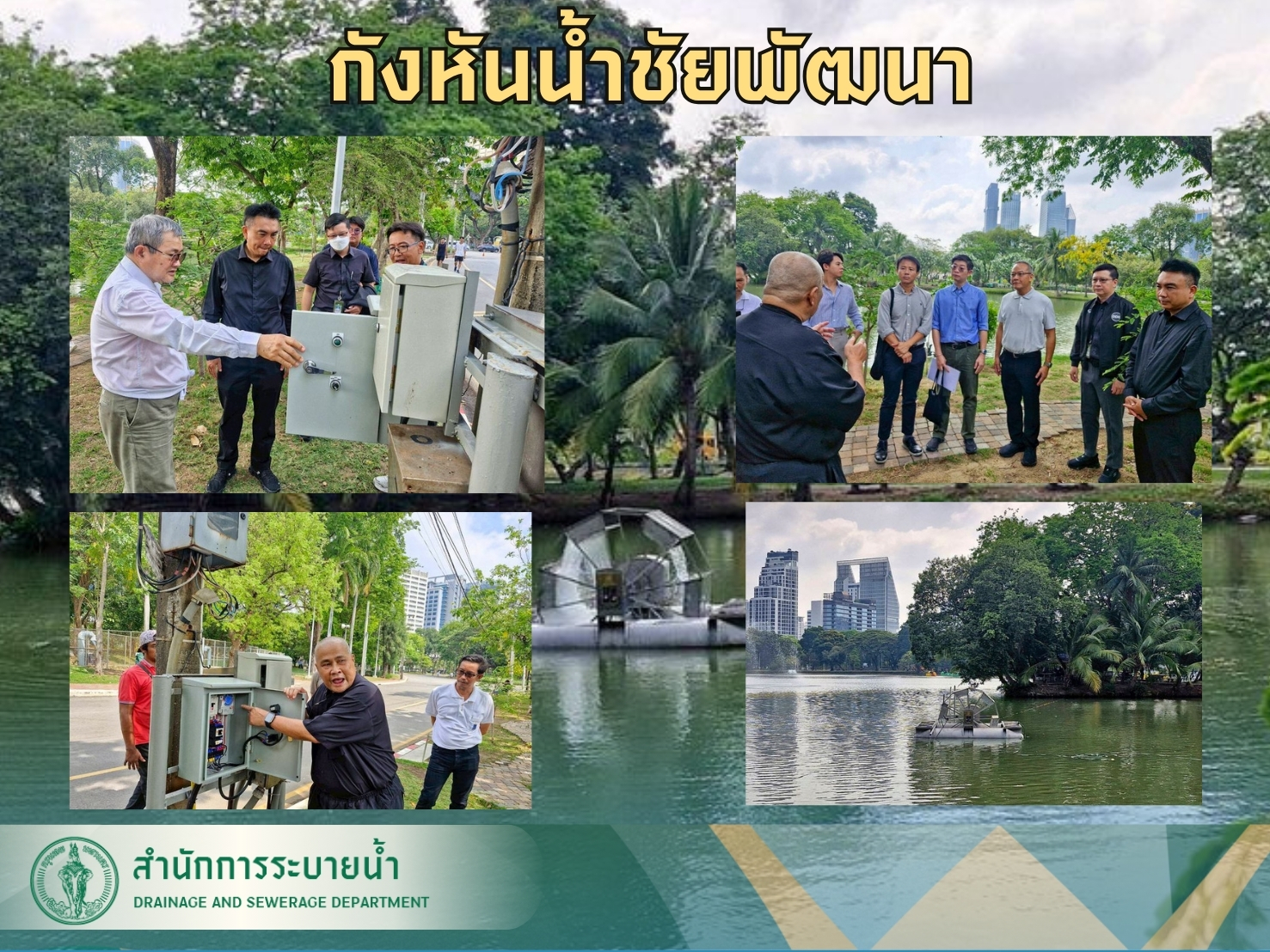 17 เม.ย. 2569 สำนักการระบายน้ำ ร่วมกับ บริษัท เซนทรัลพัฒนา จำกัด (มหาชน) ลงพื้นที่ตรวจสอบการเดินระบบ “กังหันน้ำชัยพัฒนา” ณ สวนลุมพินี