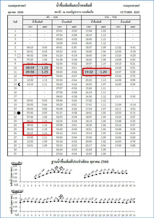 ประกาศกรมอุทกศาสตร์ เรื่อง สภาวะระดับน้ำในแม่น้ำเจ้าพระยา วันที่ 9 - 18 ต.ค. 2568