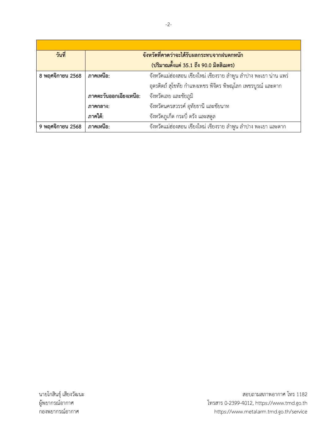 ประกาศกรมอุตุนิยมวิทยา เรื่อง พายุคัลแมกี และฝนตกหนักถึงหนักมากบริเวณประเทศไทย ฉบับที่ 18