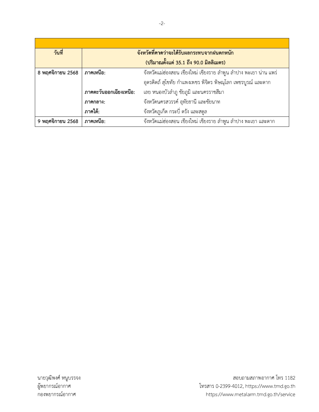 ประกาศกรมอุตุนิยมวิทยา เรื่อง พายุคัลแมกี และฝนตกหนักถึงหนักมากบริเวณประเทศไทย ฉบับที่ 19