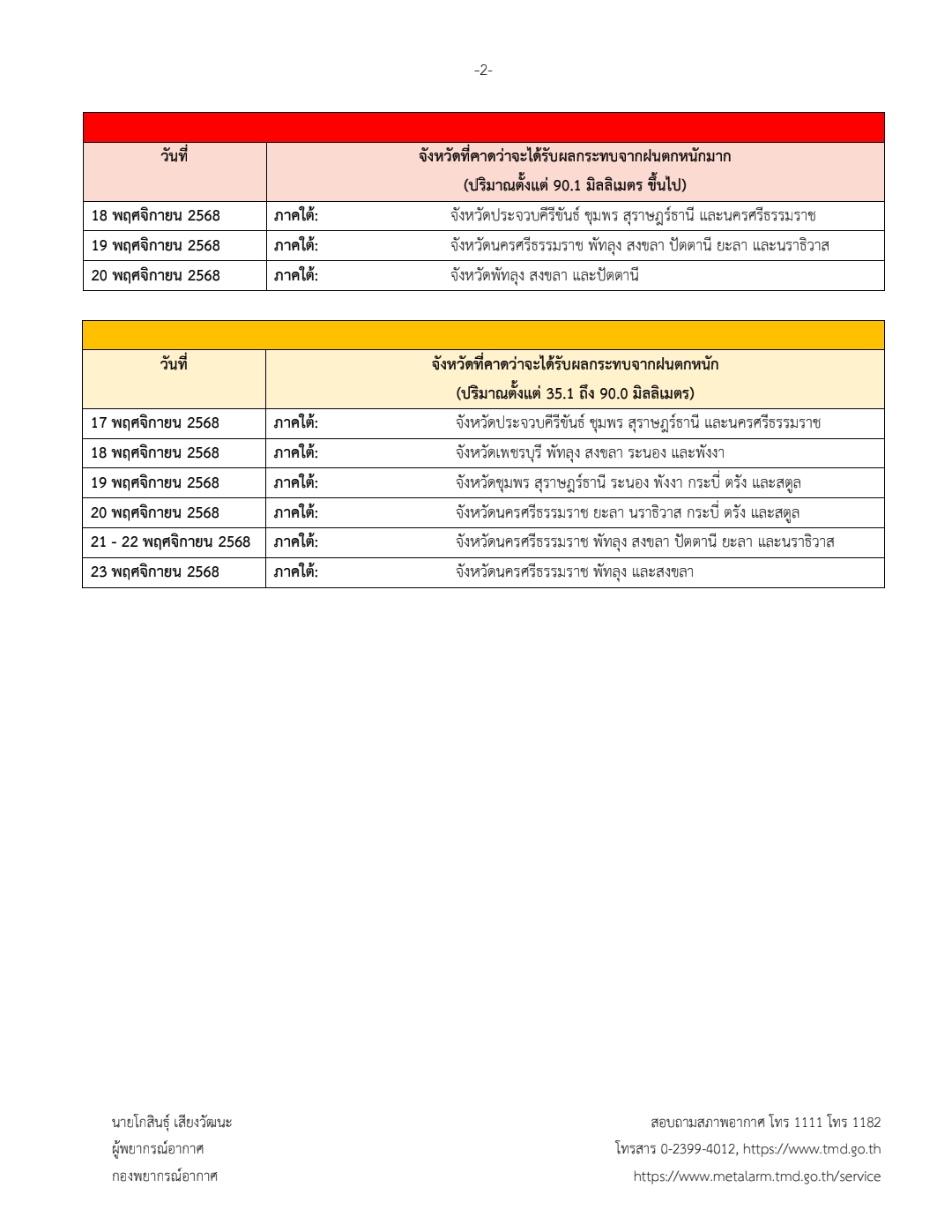 ประกาศกรมอุตุนิยมวิทยา เรื่อง อากาศหนาวเย็นบริเวณประเทศไทยตอนบน ฝนตกหนักถึงหนักมากบริเวณภาคใต้ และคลื่นลมแรงบริเวณอ่าวไทย ฉบับที่ 6