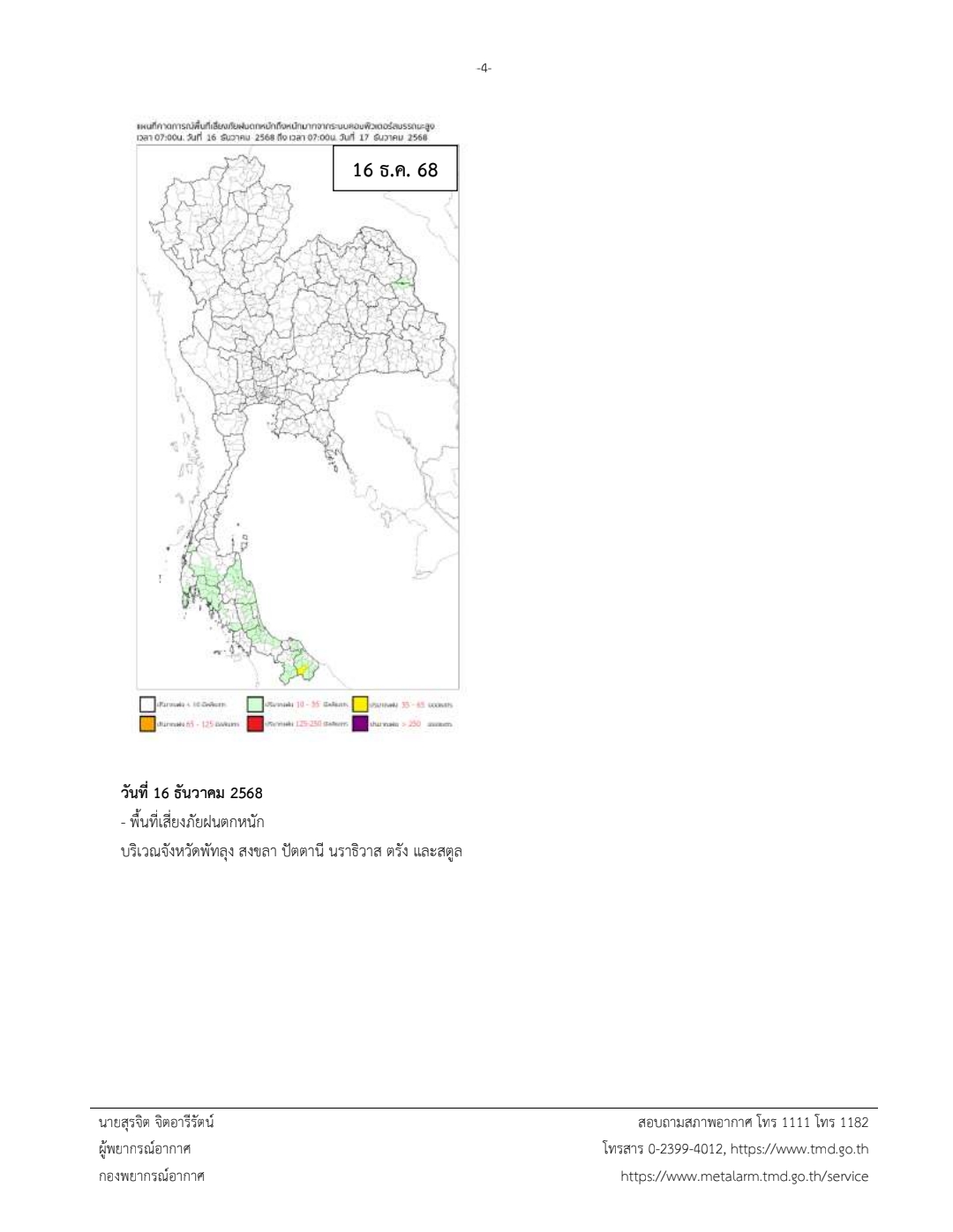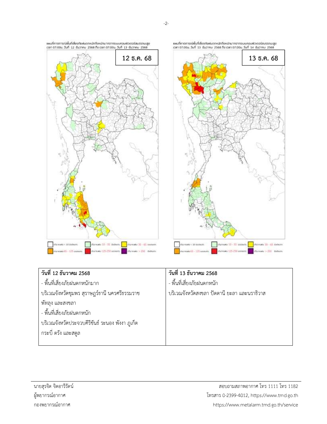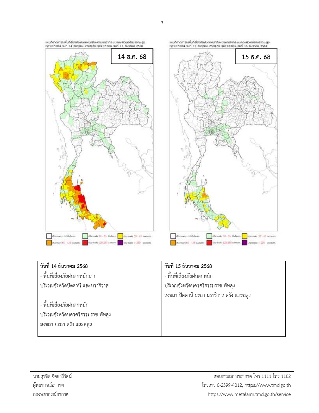ประกาศกรมอุตุนิยมวิทยา เรื่อง ฝนตกหนักถึงหนักมากบริเวณภาคใต้ และคลื่นลมแรงบริเวณอ่าวไทย (มีผลกระทบตั้งแต่วันที่ 12-16 ธันวาคม 2568) ฉบับที่ 14