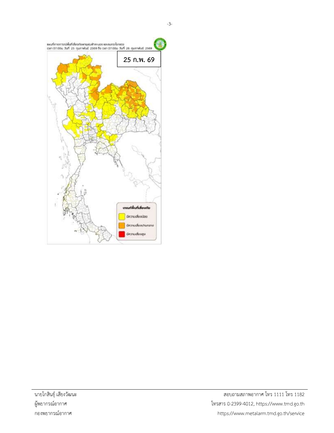 ประกาศกรมอุตุนิยมวิทยา เรื่อง พายุฤดูร้อนบริเวณประเทศไทยตอนบน (มีผลกระทบในช่วงวันที่ 23-25 กุมภาพันธ์ 2569) ฉบับที่ 2