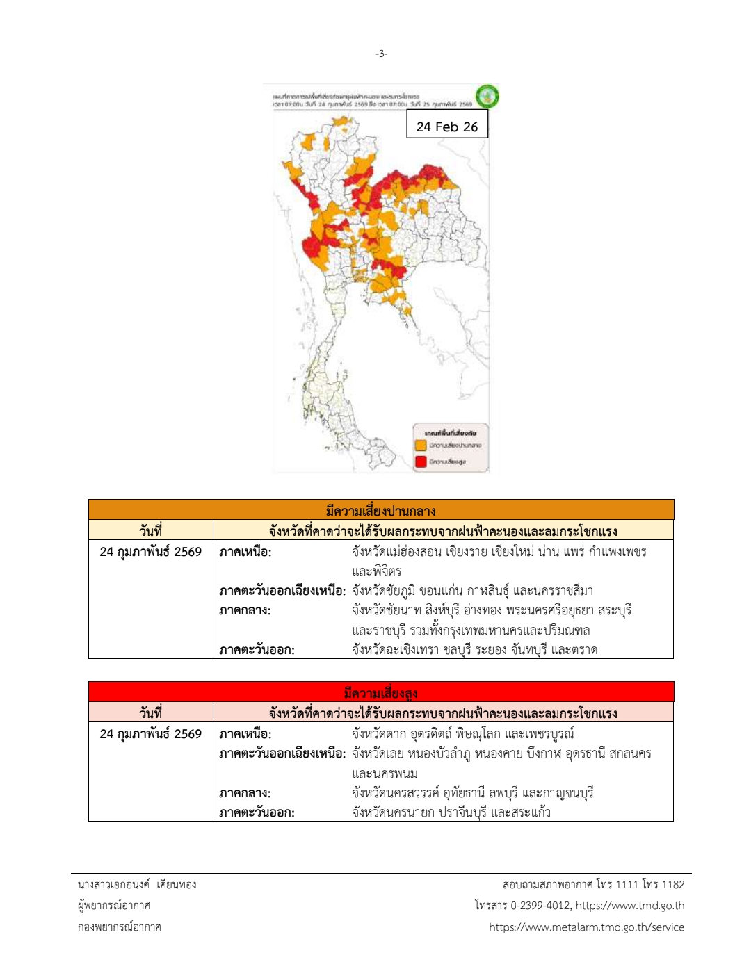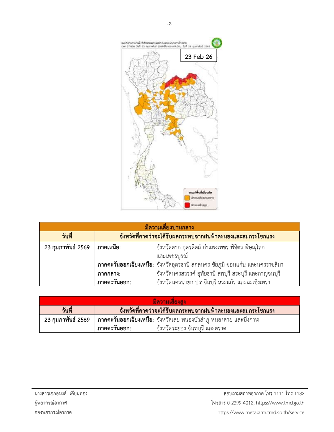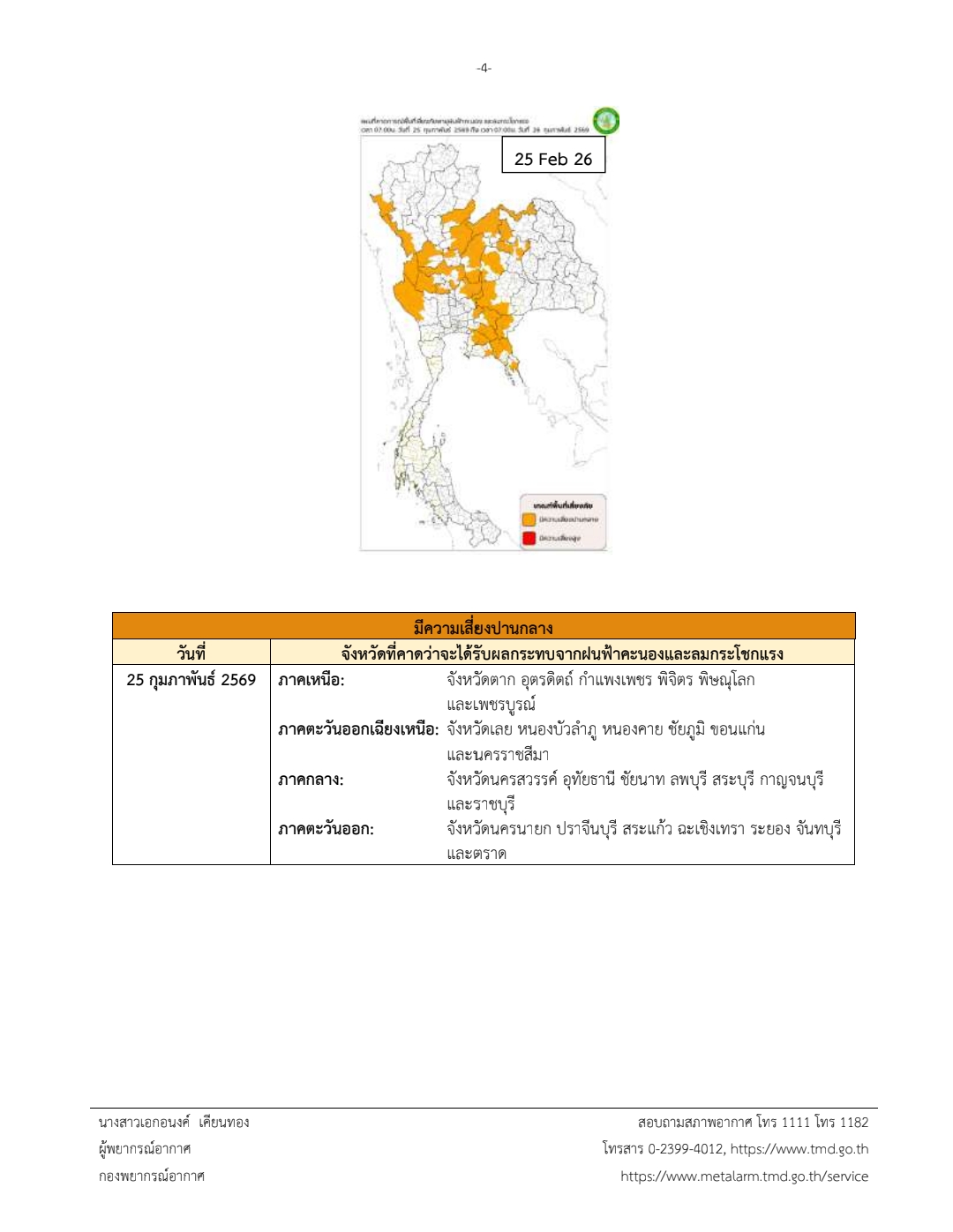 ประกาศกรมอุตุนิยมวิทยา เรื่อง พายุฤดูร้อนบริเวณประเทศไทยตอนบน (มีผลกระทบจนถึงวันที่ 25 กุมภาพันธ์ 2569) ฉบับที่ 4