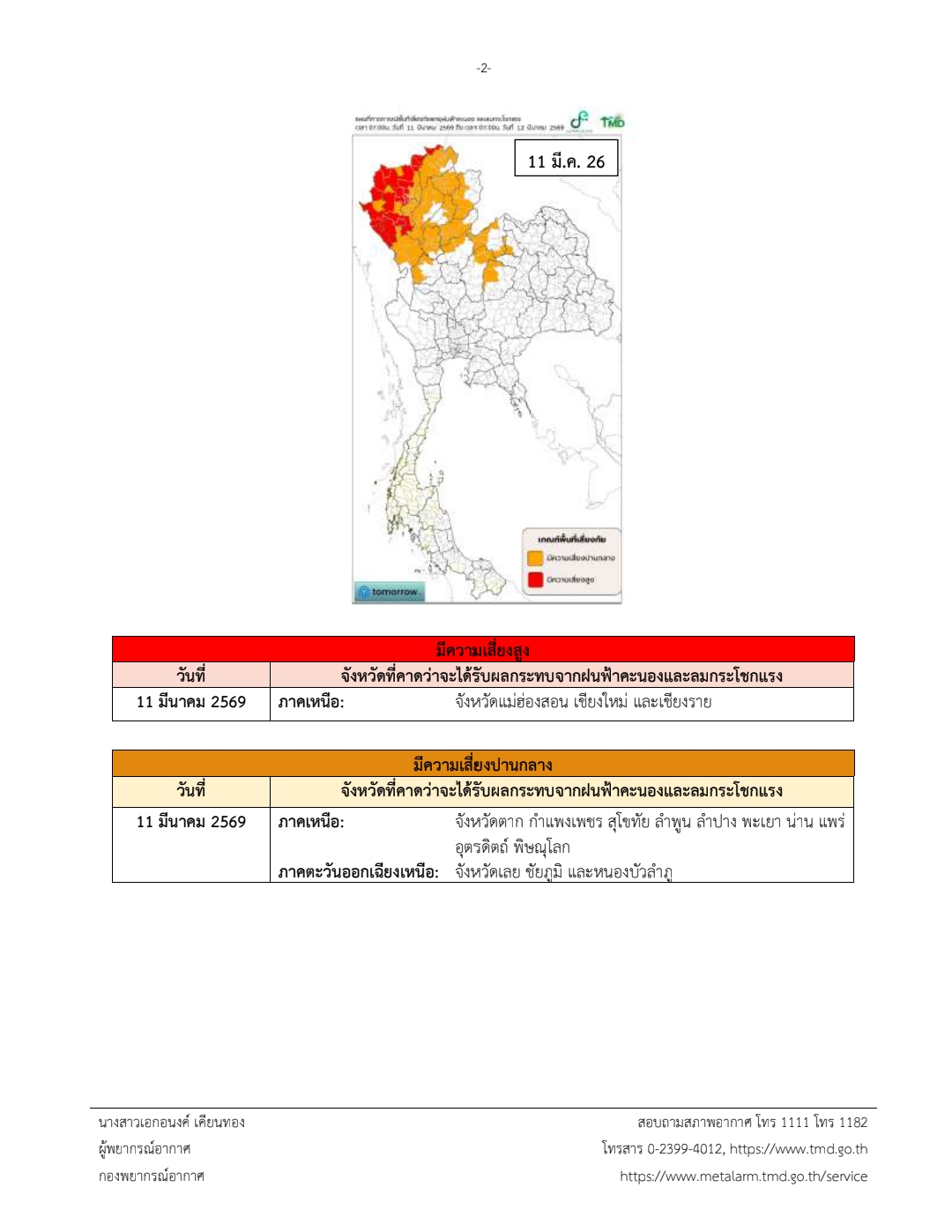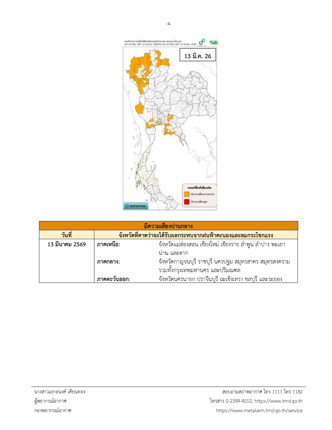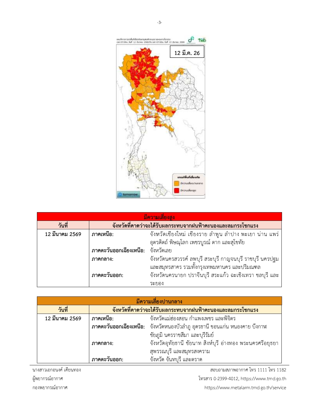 ประกาศกรมอุตุนิยมวิทยา เรื่อง พายุฤดูร้อนบริเวณประเทศไทยตอนบน (มีผลกระทบจนถึงวันที่ 13 มีนาคม 2569) ฉบับที่ 3