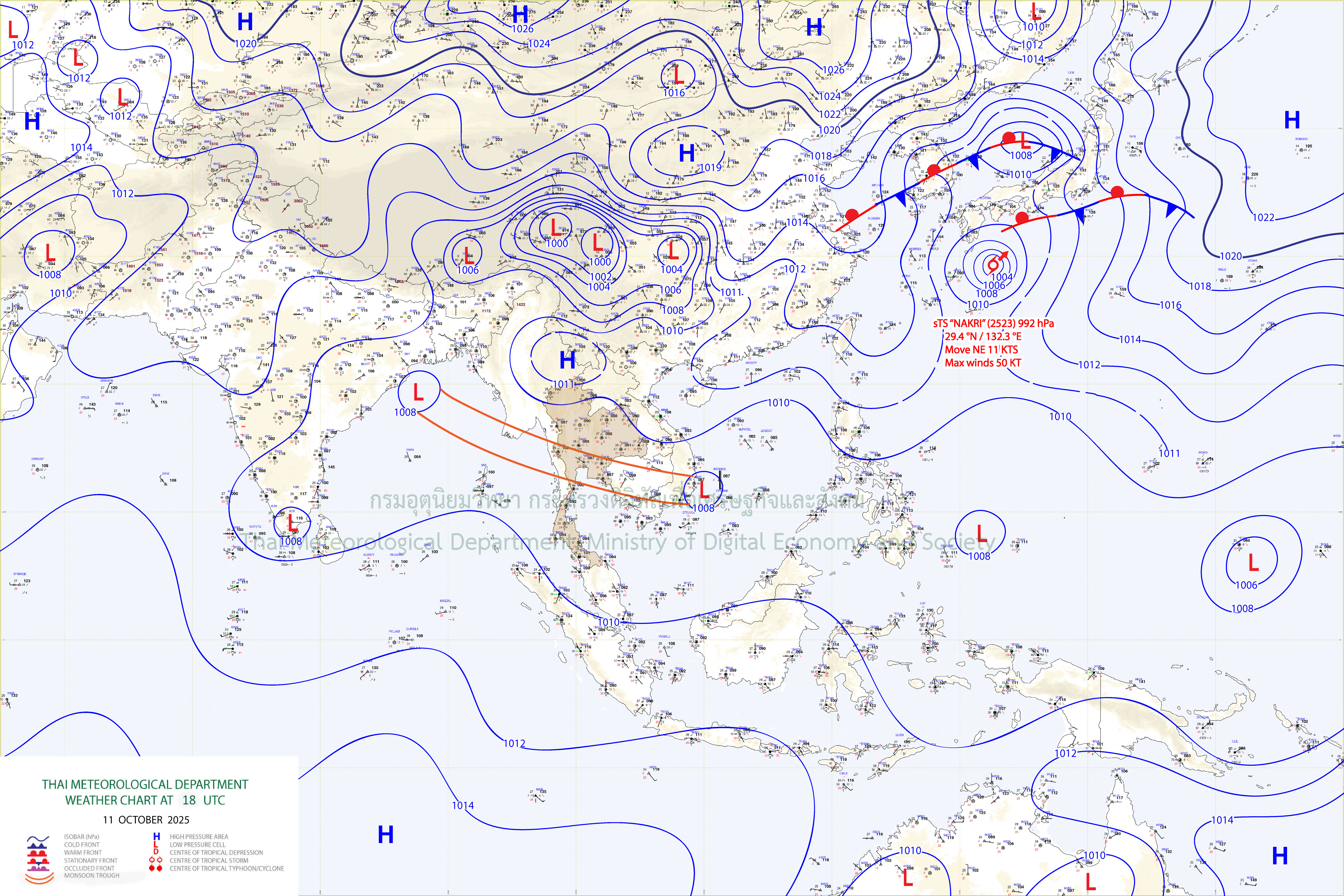 สำหรับบริเวณทะเลอันดามันและอ่าวไทยมีคลื่นสูงประมาณ 1 เมตร บริเวณที่มีฝนฟ้าคะนองคลื่นสูงมากกว่า 2 เมตร ขอให้ชาวเรือเดินเรือด้วยความระมัดระวัง และหลีกเลี่ยงการเดินเรือในบริเวณที่มีฝนฟ้าคะนองไว้ด้วย