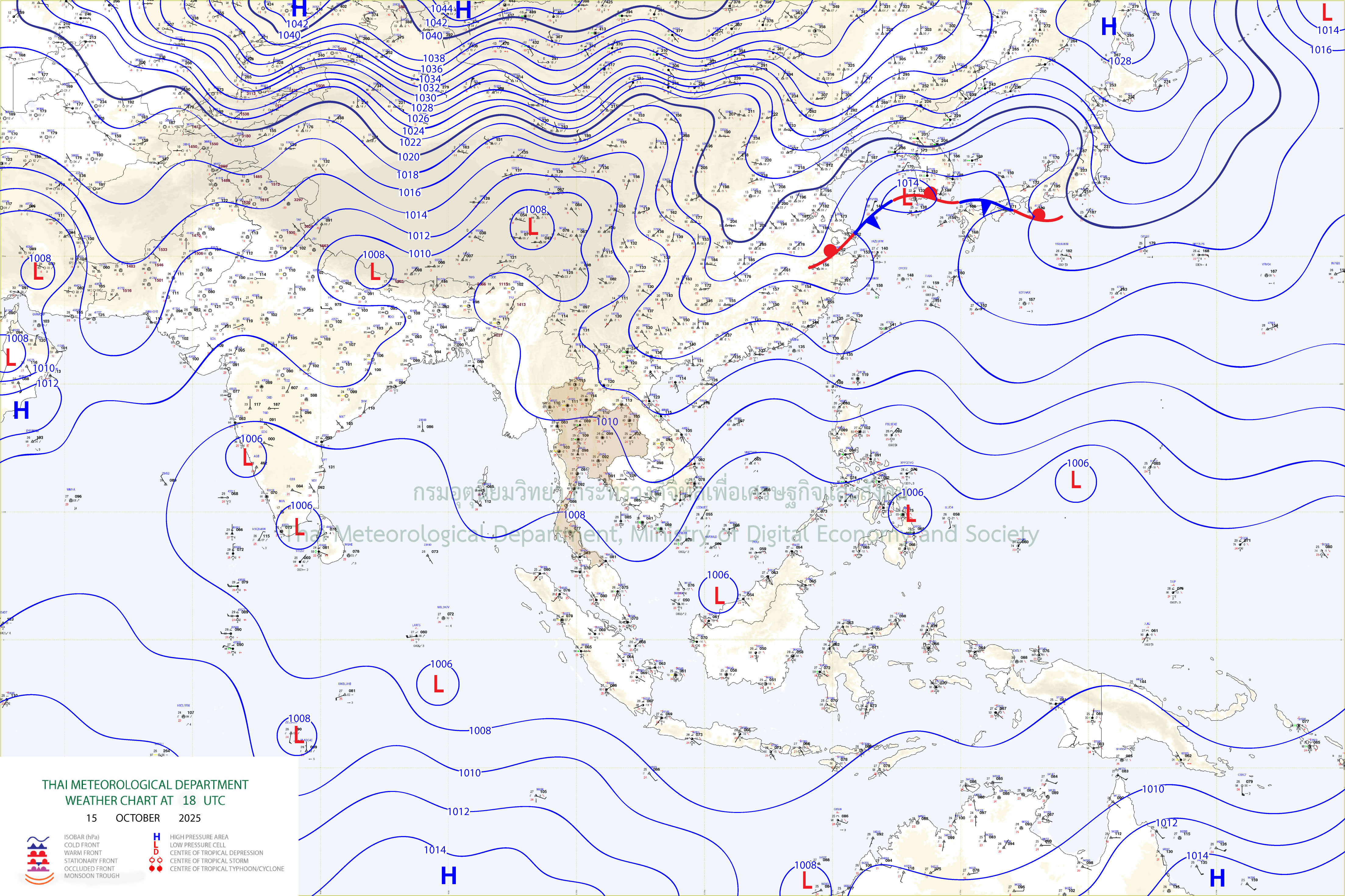 ลักษณะอากาศทั่วไป : ประเทศไทยมีฝนลดลงจากเมื่อวาน เว้นแต่ภาคใต้มีเพิ่มขึ้น และฝนตกหนักบางพื้นที่ เนื่องจากลมตะวันออกและลมตะวันออกเฉียงใต้พัดปกคลุมประเทศไทย อ่าวไทย และทะเลอันดามัน ขอให้ประชาชนในบริเวณดังกล่าวระวังอันตรายจากฝนฟ้าคะนอง ฝนตกหนัก และฝนที่ตกสะสม รวมทั้งเพิ่มความระมัดระวังในการสัญจรผ่านบริเวณที่มีน้ำท่วมขัง ควรพกร่มและเสื้อกันฝนเมื่อออกนอกบ้านในระยะนี้ไว้ด้วย สำหรับบริเวณทะเลอันดามันและอ่าวไทยมีคลื่นสูงประมาณ 1 เมตร บริเวณที่มีฝนฟ้าคะนองคลื่นสูงมากกว่า 2 เมตร ขอให้ชาวเรือเดินเรือด้วยความระมัดระวัง และหลีกเลี่ยงการเดินเรือในบริเวณที่มีฝนฟ้าคะนองไว้ด้วย