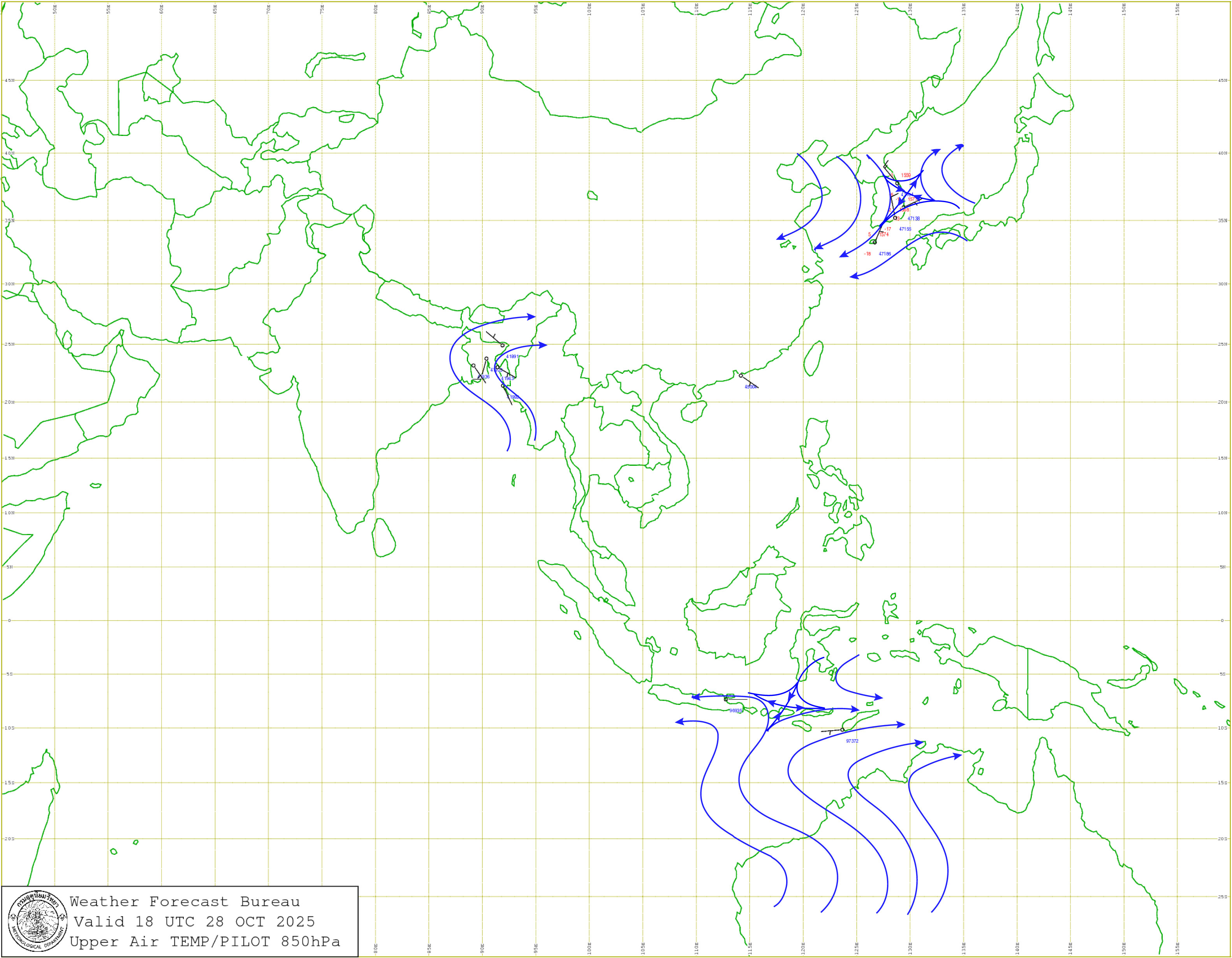 กรุงเทพมหานครและปริมณฑล : เมฆเป็นส่วนมาก โดยมีฝน/ฝนฟ้าคะนอง ร้อยละ 10 ของพื้นที่ อุณหภูมิต่ำสุด 25-27 องศาเซลเซียส อุณหภูมิสูงสุด 31-33 องศาเซลเซียส ลมตะวันออกเฉียงเหนือ ความเร็ว 10-20 กม./ชม.