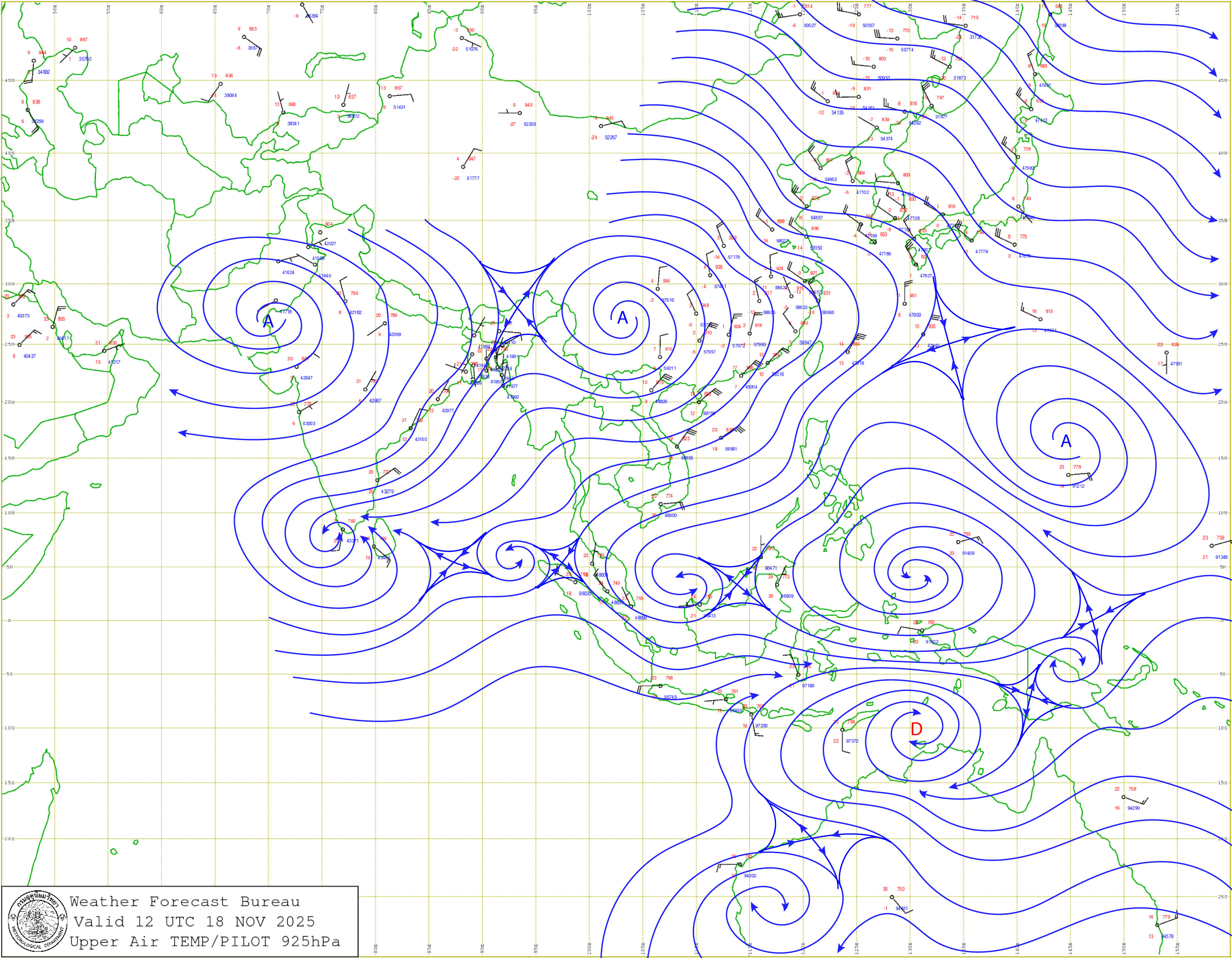 กรุงเทพมหานครและปริมณฑล : มีฝนเล็กน้อยบางแห่ง อุณหภูมิจะลดลง 1-2 องศาเซลเซียส กับมีอากาศเย็นในตอนเช้าและมีลมแรง อุณหภูมิต่ำสุด 21-22 องศาเซลเซียส อุณหภูมิสูงสุด 28-29 องศาเซลเซียส
