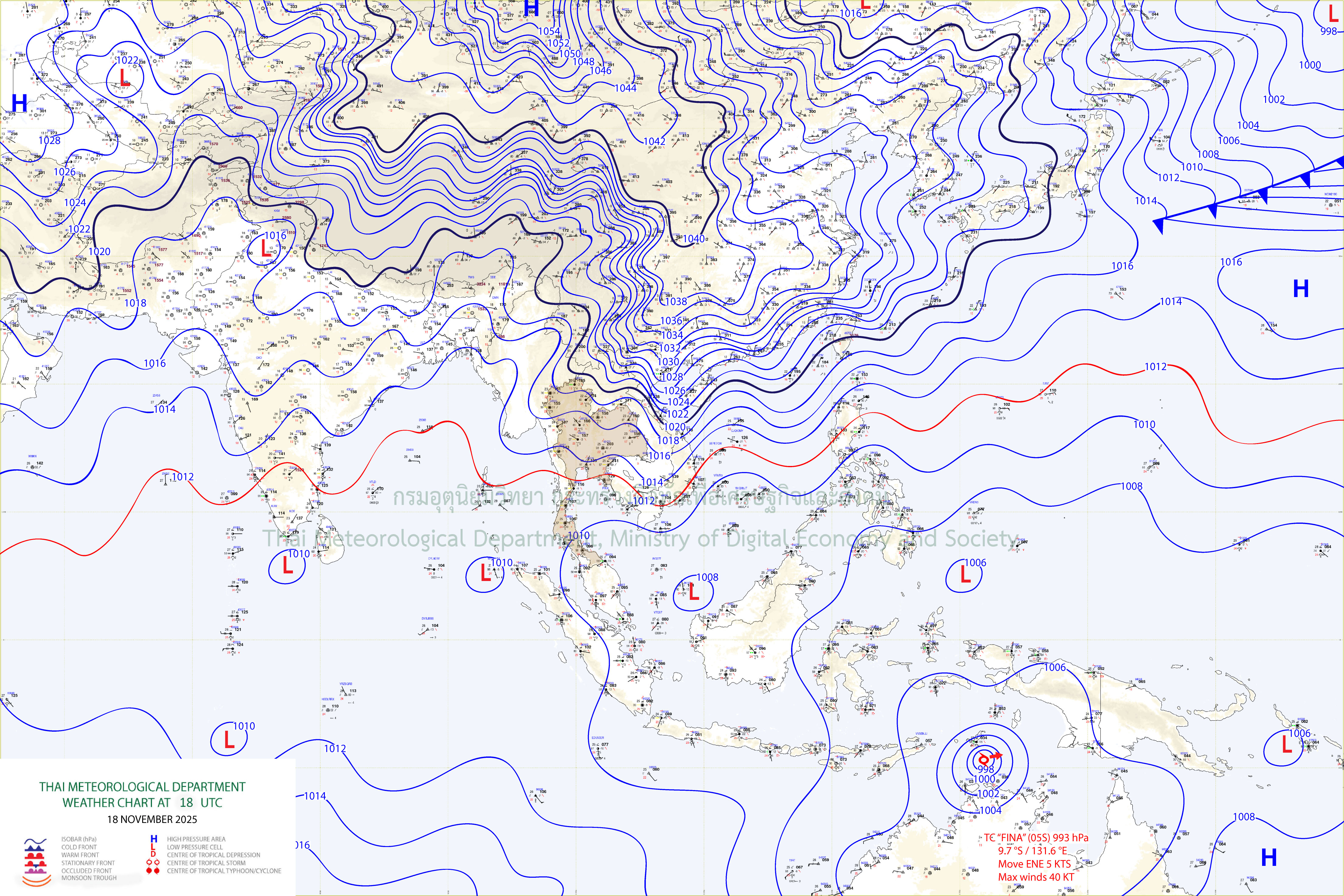 สำหรับภาคใต้มีฝนตกหนักหลายพื้นที่และมีฝนตกหนักมากบางแห่ง เนื่องจากมรสุมตะวันออกเฉียงเหนือที่พัดปกคลุมอ่าวไทย ภาคใต้ และทะเลอันดามันตอนบนมีกำลังแรงขึ้น ขอให้ประชาชนในภาคใต้ระวังอันตรายจากฝนตกหนักถึงหนักมากและฝนที่ตกสะสม ซึ่งอาจทำให้เกิดน้ำท่วมฉับพลันและน้ำป่าไหลหลาก โดยเฉพาะพื้นที่ลาดเชิงเขาใกล้ทางน้ำไหลผ่านและพื้นที่ลุ่มไว้ด้วย ส่วนคลื่นลมบริเวณอ่าวไทยมีกำลังค่อนข้างแรง โดยมีคลื่นสูง 2-3 เมตร บริเวณที่มีฝนฟ้าคะนองคลื่นสูงมากกว่า 3 เมตร ห่างฝั่งของทะเลอันดามันตอนบนมีคลื่นสูงประมาณ 2 เมตร บริเวณที่มีฝนฟ้าคะนองคลื่นสูงมากกว่า 2 เมตร ขอให้ชาวเรือบริเวณอ่าวไทยและทะเลอันดามันเดินเรือด้วยความระมัดระวังและหลีกเลี่ยงการเดินเรือในบริเวณที่มีฝนฟ้าคะนอง สำหรับเรือเล็กบริเวณอ่าวไทยควรงดออกจากฝั่ง