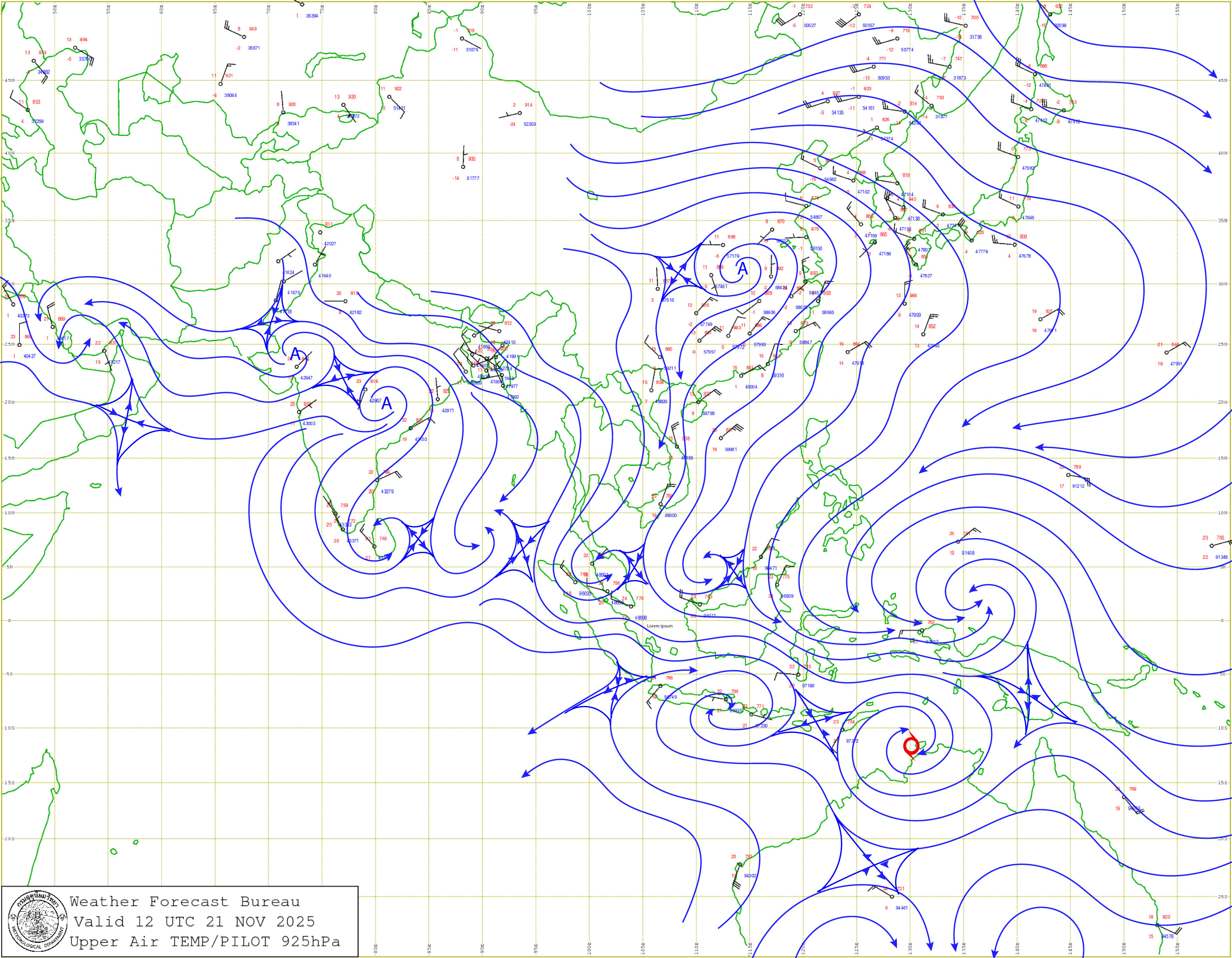 กรุงเทพมหานครและปริมณฑล : อากาศเย็นในตอนเช้า อุณหภูมิต่ำสุด 21-23 องศาเซลเซียส อุณหภูมิสูงสุด 29-30 องศาเซลเซียส ลมตะวันออกเฉียงเหนือ ความเร็ว 10-25 กม./ชม.