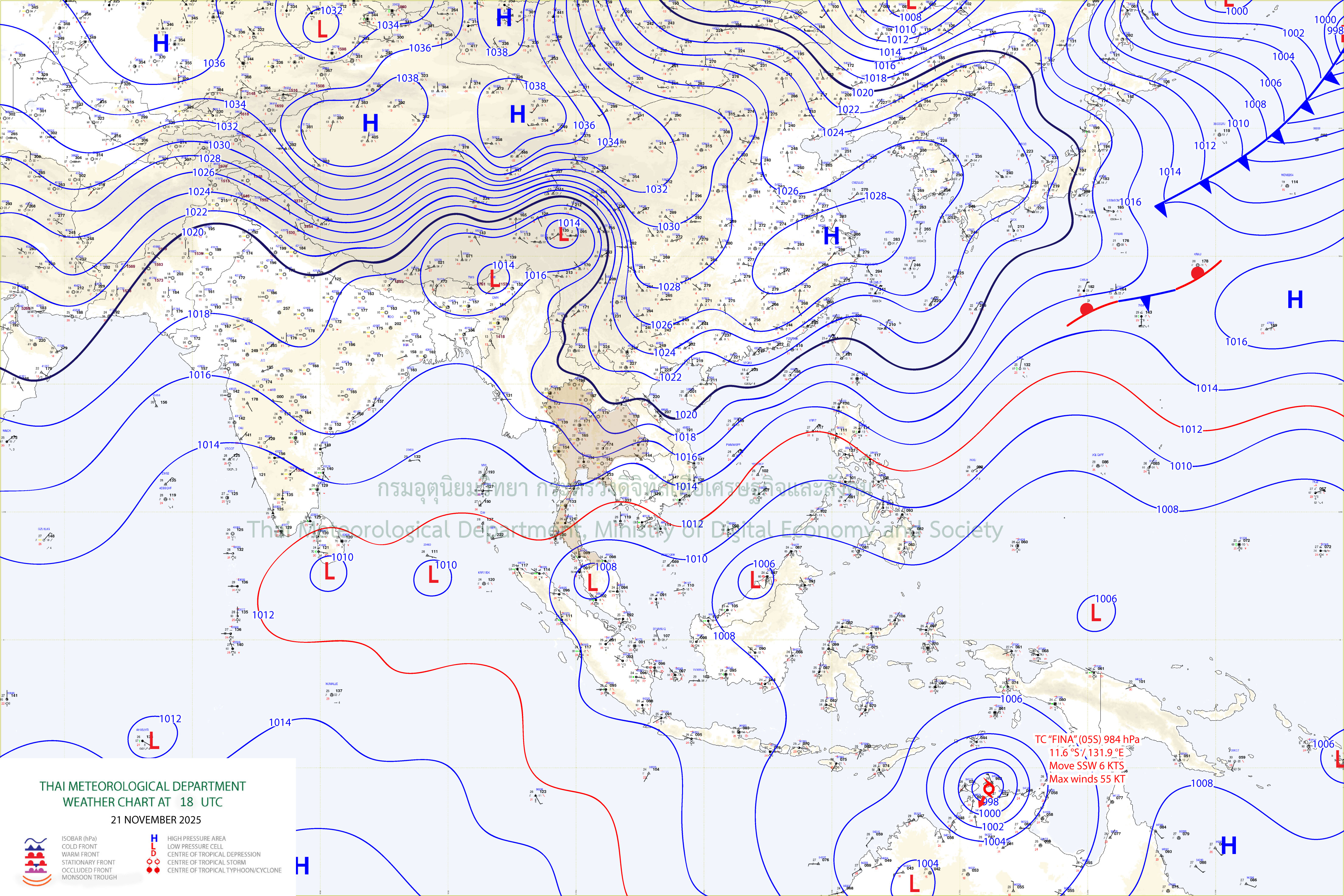 ลักษณะอากาศทั่วไป : พยากรณ์อากาศ 24 ชั่วโมงข้างหน้า ภาคเหนือและภาคตะวันออกเฉียงเหนือ มีอากาศเย็นถึงหนาว ส่วนภาคกลาง รวมทั้งกรุงเทพมหานครและปริมณฑล และภาคตะวันออก มีอากาศเย็นในตอนเช้า ขอให้ประชาชนในบริเวณดังกล่าวดูแลรักษาสุขภาพ เนื่องจากสภาพอากาศที่หนาวเย็นกับมีลมแรง สำหรับเกษตรกรควรป้องกันและระวังความเสียหายที่จะเกิดต่อผลผลิตทางการเกษตรไว้ด้วย ส่วนประชาชนบริเวณภาคตะวันออกเฉียงเหนือระวังอันตรายจากอัคคีภัยเนื่องจากสภาพอากาศแห้ง ทั้งนี้เนื่องจากบริเวณความกดอากาศสูงหรือมวลอากาศเย็นกำลังแรงจากประเทศจีนยังคงปกคลุมประเทศไทยตอนบนและภาคใต้ตอนบน