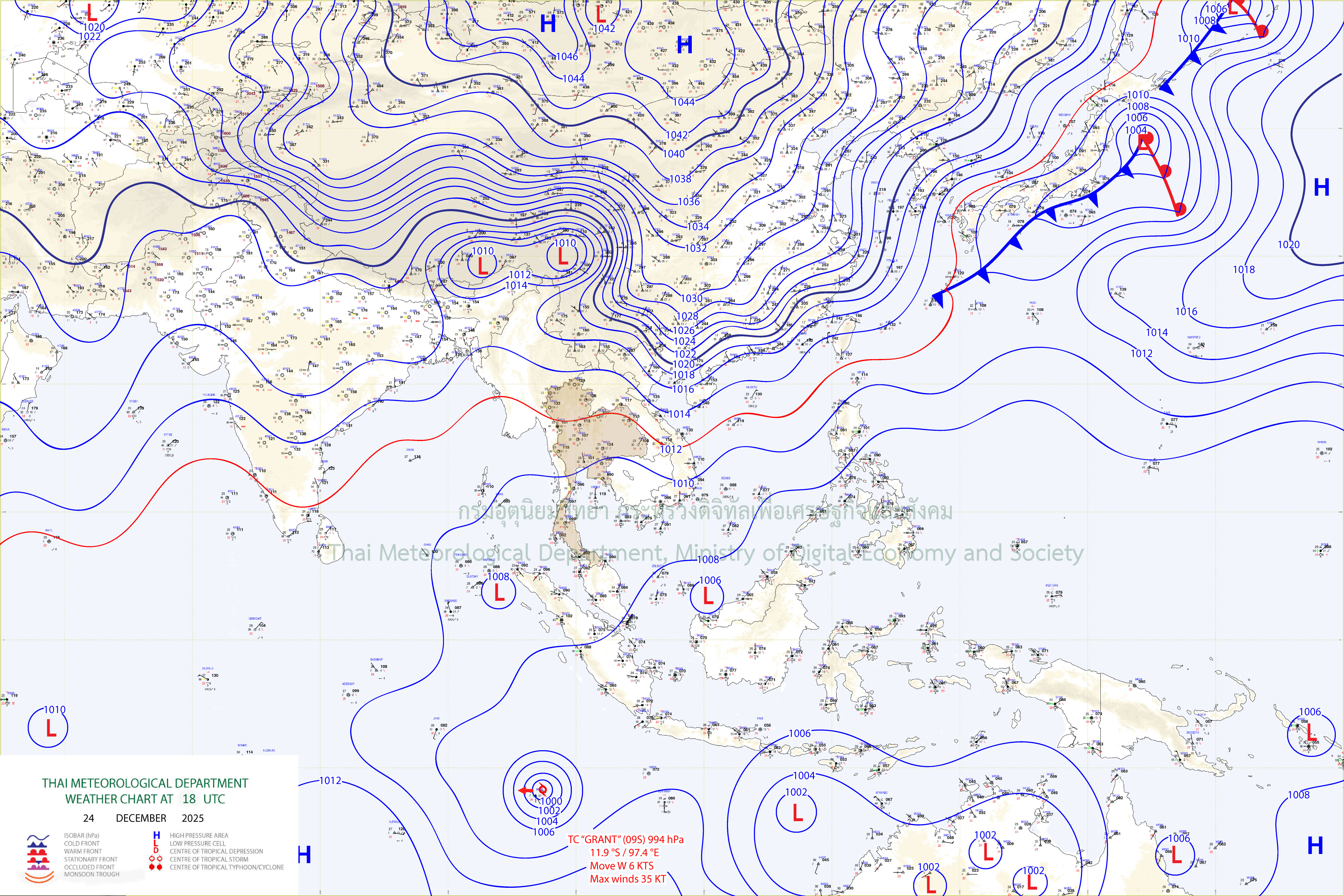 สำหรับประเทศไทยตอนบนจะมีอุณหภูมิลดลง กับมีลมแรง เนื่องจากบริเวณความกดอากาศสูงหรือมวลอากาศเย็นกำลังค่อนข้างแรงอีกระลอกหนึ่งจากประเทศจีนได้แผ่ลงมาปกคลุมประเทศจีนตอนใต้และประเทศเวียดนามตอนบนแล้ว คาดว่าจะแผ่ลงมาปกคลุมประเทศไทยตอนบนในวันนี้ (25 ธ.ค.) ขอให้ประชาชนบริเวณประเทศไทยตอนบนดูแลรักษาสุขภาพเนื่องจากสภาพอากาศที่หนาวเย็นลง รวมถึงให้ระวังอันตรายจากอัคคีภัยที่อาจเกิดขึ้นเนื่องจากอากาศแห้งและลมแรงไว้ด้วย