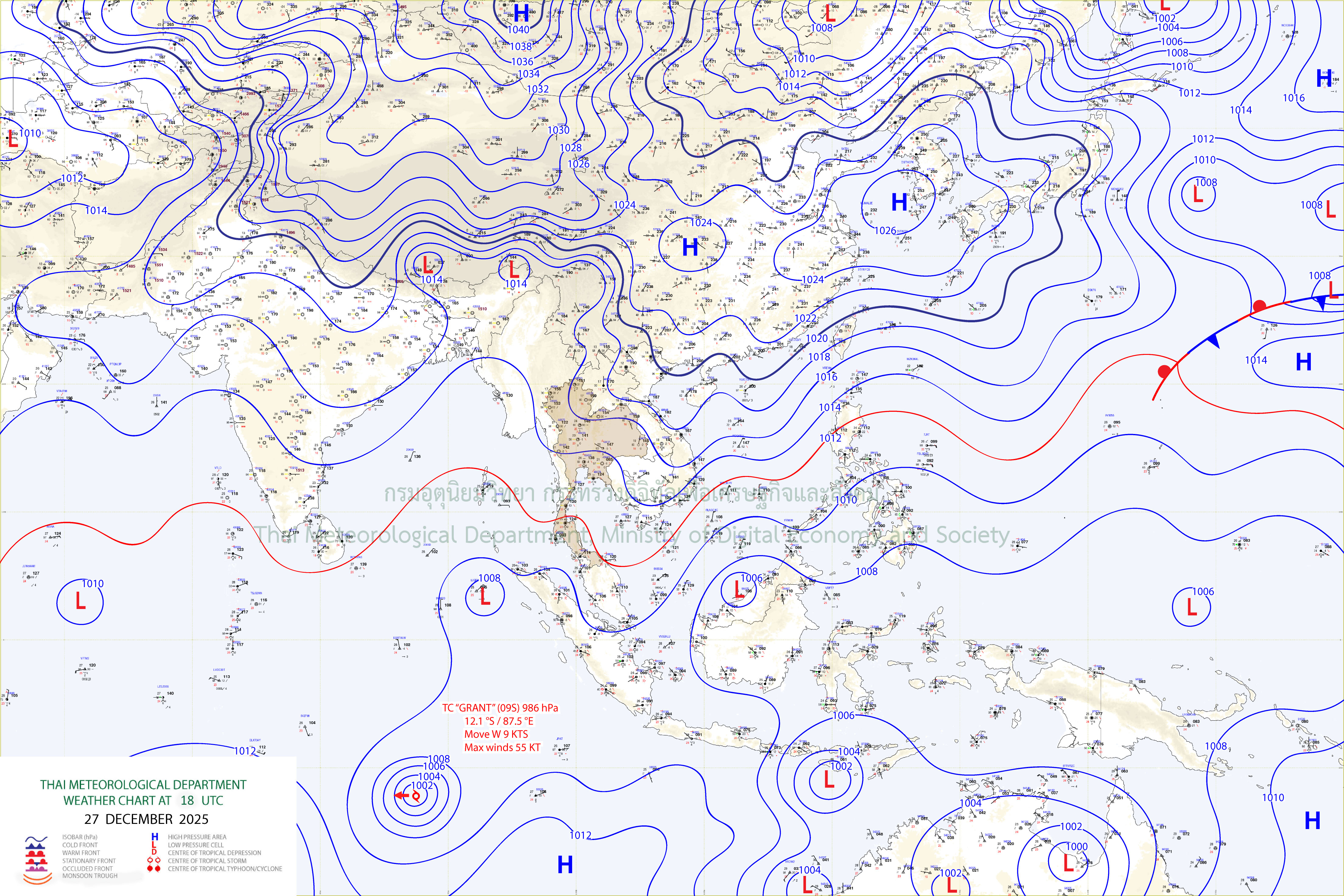 ส่วนคลื่นลมบริเวณอ่าวไทยตอนล่างมีกำลังค่อนข้างแรง โดยมีคลื่นสูง 2-3 เมตร บริเวณที่มีฝนฟ้าคะนองคลื่นสูงมากกว่า 3 เมตร อ่าวไทยตอนบนและห่างฝั่งทะเลอันดามันมีคลื่นสูง 1-2 เมตร บริเวณที่มีฝนฟ้าคะนองคลื่นสูงมากกว่า 2 เมตร ขอให้ชาวเรือบริเวณอ่าวไทยและทะเลอันดามันเดินเรือด้วยความระมัดระวัง และหลีกเลี่ยงการเดินเรือในบริเวณที่มีฝนฟ้าคะนอง เรือเล็กบริเวณอ่าวไทยตอนล่างควรงดออกจากฝั่งต่อไปอีก 1 วัน (28 ธ.ค. 68) และประชาชนบริเวณชายฝั่งภาคใต้ฝั่งตะวันออกตอนล่างควรระมัดระวังคลื่นที่ซัดเข้าหาฝั่งไว้ด้วย