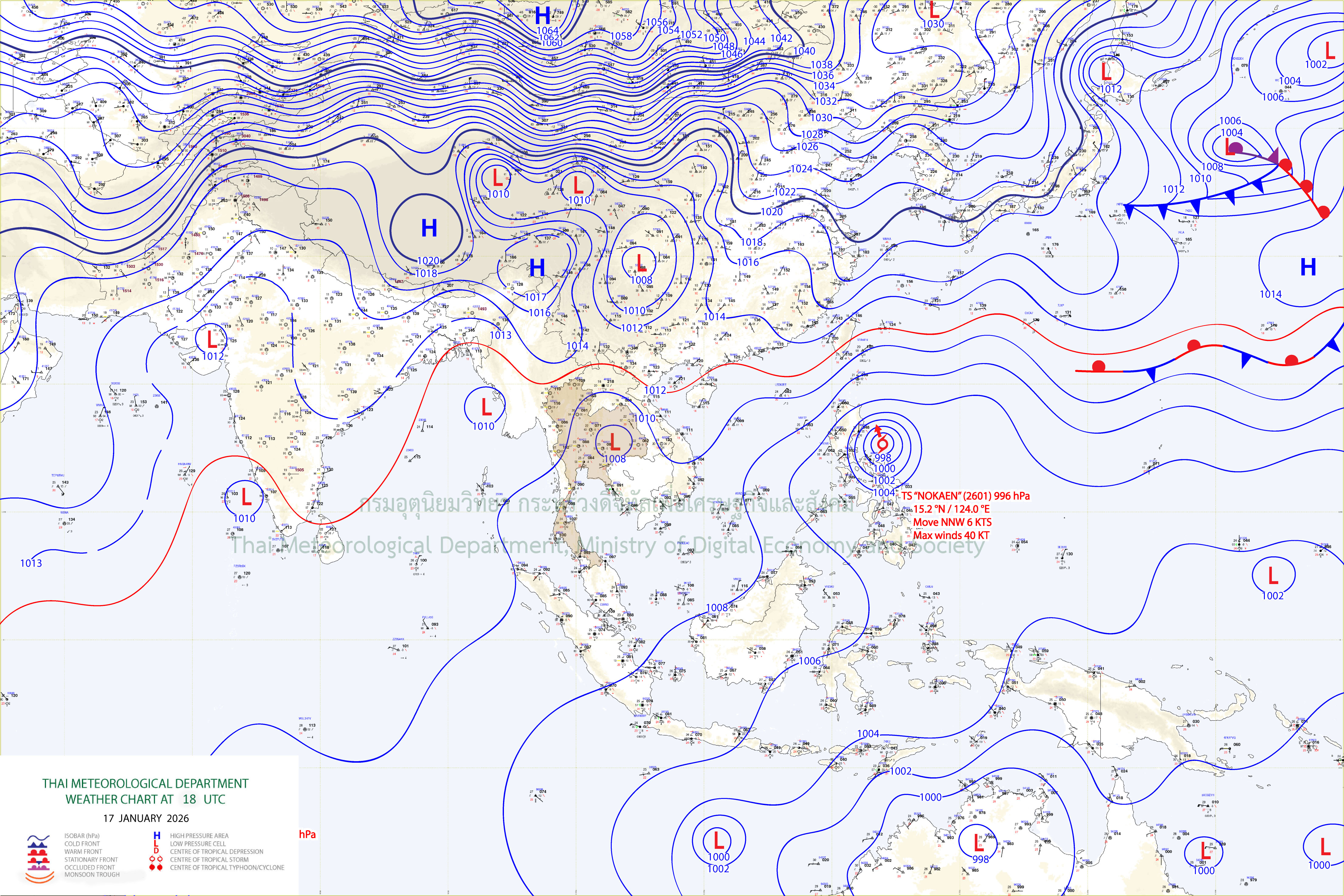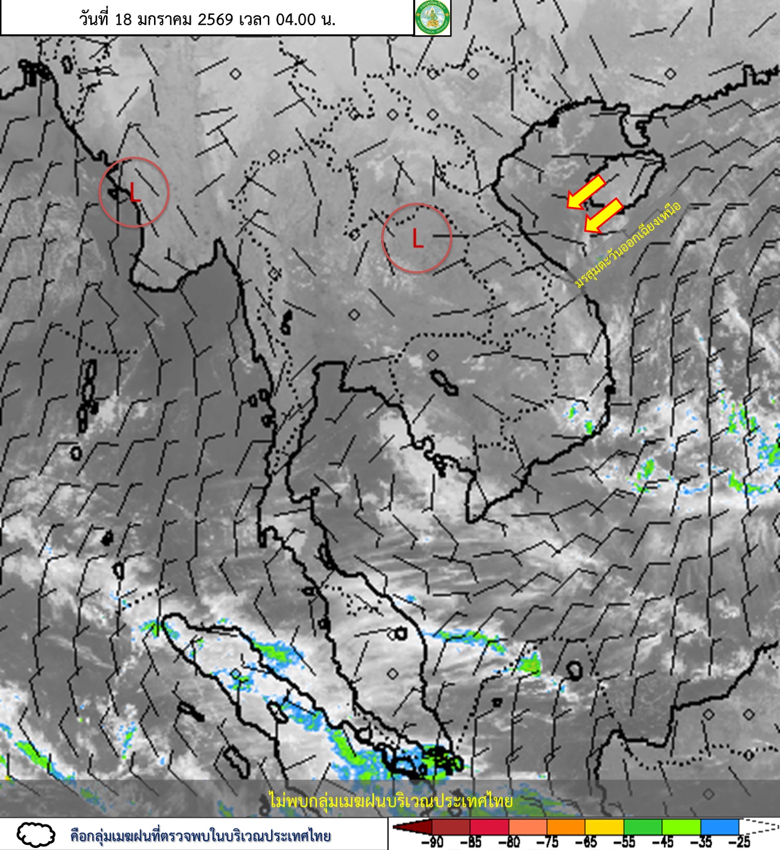 รายงานสถานการณ์ประจำวันที่ 18 มกราคม 2569 ลักษณะอากาศทั่วไป : พยากรณ์อากาศ 24 ชั่วโมงข้างหน้า ประเทศไทยตอนบนมีอากาศเย็นกับมีหมอกในตอนเช้าและมีหมอกหนาบางพื้นที่ โดยภาคเหนือและภาคตะวันออกเฉียงเหนือตอนบนยังคงมีอากาศเย็นถึงหนาว เนื่องจากบริเวณความกดอากาศสูงหรือมวลอากาศเย็นกำลังอ่อนปกคลุมประเทศไทยตอนบน ในขณะที่ลมฝ่ายตะวันตกจากประเทศเมียนมาเคลื่อนเข้าปกคลุมภาคเหนือตอนบนและลาวตอนบน ส่วนภาคกลางตอนล่างและภาคตะวันออกมีฝนเล็กน้อยบางแห่ง เนื่องจากมีลมตะวันออกเฉียงใต้พัดนำความชื้นเข้ามาปกคลุม ขอให้ประชาชนดูแลรักษาสุขภาพเนื่องจากสภาพอากาศที่เปลี่ยนแปลง และเพิ่มความระมัดระวังในการสัญจรผ่านบริเวณที่มีหมอก รวมทั้งระวังอันตรายจากอัคคีภัยเนื่องจากสภาพอากาศแห้งไว้ด้วย สำหรับภาคใต้มีฝนเล็กน้อยบางพื้นที่ เนื่องจากมรสุมตะวันออกเฉียงเหนือกำลังอ่อนปกคลุมอ่าวไทย และภาคใต้ โดยคลื่นลมบริเวณอ่าวไทยและทะเลอันดามันมีคลื่นสูงประมาณ 1 เมตร ขอให้ชาวเรือเพิ่มความระมัดระวังในเดินการเรือด้วยไว้ด้วย ฝุ่นละอองในระยะนี้ ประเทศไทยตอนบนมีการสะสมของฝุ่นละออง/หมอกควันอยู่ในเกณฑ์ปานกลางถึงมาก เนื่องจากการระบายอากาศอยู่ในเกณฑ์ไม่ดี และมีลมอ่อน กรุงเทพมหานครและปริมณฑล : มีหมอกในตอนเช้า และมีหมอกหนาบางพื้นที่ โดยมีฝน ร้อยละ 10 ของพื้นที่ อุณหภูมิต่ำสุด 23-24 องศาเซลเซียส อุณหภูมิสูงสุด 32-35 องศาเซลเซียส ลมตะวันออกเฉียงใต้ ความเร็ว 10-15 กม./ชม. ในรอบ 24 ชั่วโมงที่ผ่านมา (07.00 น.) : พื้นที่กรุงเทพมหานครฝนเล็กน้อยถึงปานกลางปริมาณฝนสูงสุดที่จุดวัด สถานีสูบน้ำแสนแสบ-คลองตัน เขตวัฒนา 24.0 มม. จุดวัดสำนักงาน เขตป้อมปราบศัตรูพ่าย 16.0 มม. จุดวัดประตูระบายน้ำคลองอรชร เขตปทุมวัน 14.0 มม. จุดวัดสถานีสูบน้ำเทเวศร์ เขตพระนคร 5.5 มม. ไม่มีรายงานจุดเร่งการระบายน้ำในถนนสายหลัก รายงานค่าระดับน้ำแนวคันกั้นน้ำด้านตะวันออกวันนี้ ( 18 มกราคม 2569 ) - ประตูระบายน้ำคลองสอง (สายใต้) (ระดับวิกฤติ +1.80) เวลา 07.00 น. ระดับ +0.52 ม.รทก. ระดับน้ำปกติ - ประตูระบายน้ำแสนแสบ (มีนบุรี) (ระดับวิกฤติ +0.70) เวลา 07.00 น. ระดับ -0.01 ม.รทก. ระดับน้ำปกติ - ประตูระบายน้ำลาดกระบัง (ระดับวิกฤติ +0.35) เวลา 07.00 น. ระดับ -0.04 ม.รทก. ระดับน้ำปกติ ระดับน้ำในแม่น้ำเจ้าพระยาขึ้นสูงสุดวานนี้ ( 17 มกราคม 2569 ) - สถานีสูบน้ำบางนา ระดับ +1.55 ม.รทก. เวลา 07.00 น. - ประตูระบายน้ำปากคลองตลาด ระดับ +1.25 ม.รทก. เวลา 08.00 น. - สถานีสูบน้ำบางเขนใหม่ ระดับ +1.26 ม.รทก. เวลา 10.00 น. ฐานน้ำขึ้นสูงสุดแม่น้ำเจ้าพระยา หน้าสถานีกองบัญชาการกองทัพเรือวันนี้ ( 18 มกราคม 2569 ) ( เช้า ระดับ +1.21 ม.