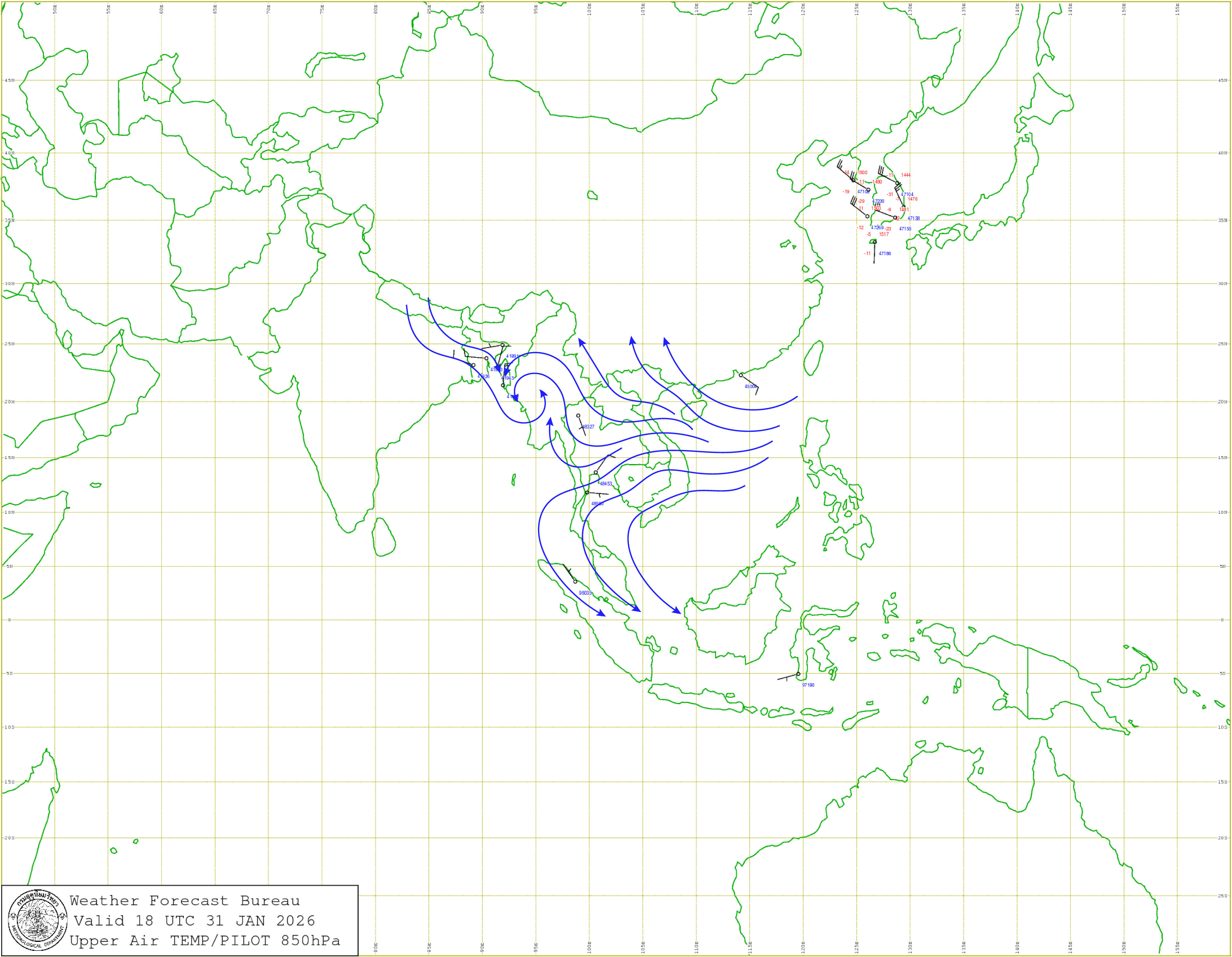 กรุงเทพมหานครและปริมณฑล : อากาศเย็นกับมีหมอกในตอนเช้า อุณหภูมิต่ำสุด 22-24 องศาเซลเซียส อุณหภูมิสูงสุด 33-35 องศาเซลเซียส ลมตะวันออก ความเร็ว 10-20 กม./ชม.