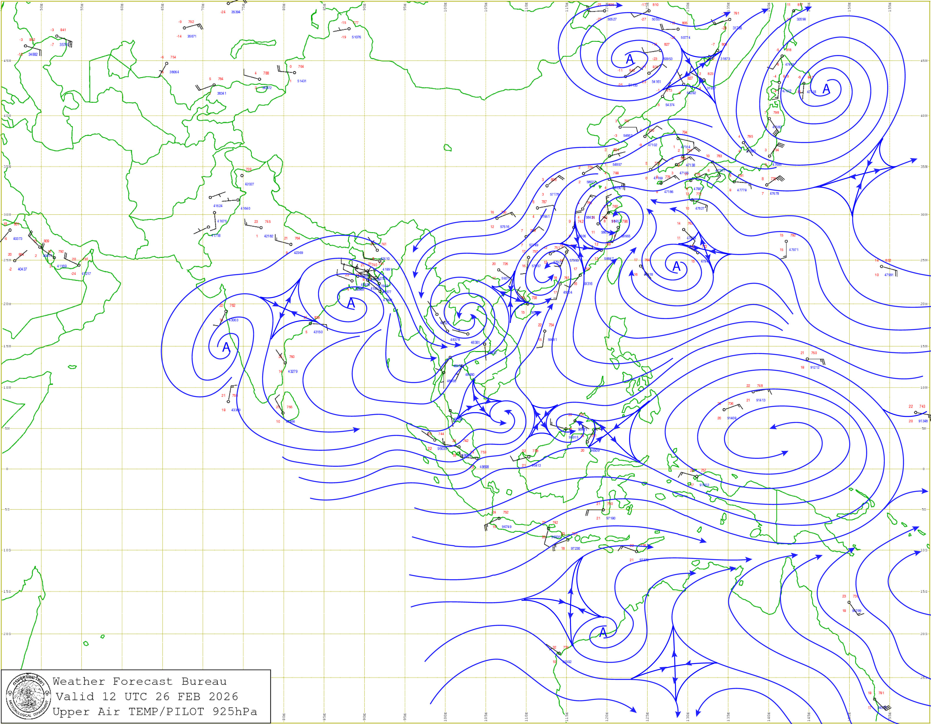 อุณหภูมิสูงสุด 35-36 องศาเซลเซียส ลมตะวันตกเฉียงใต้ ความเร็ว 10-20 กม./ชม.