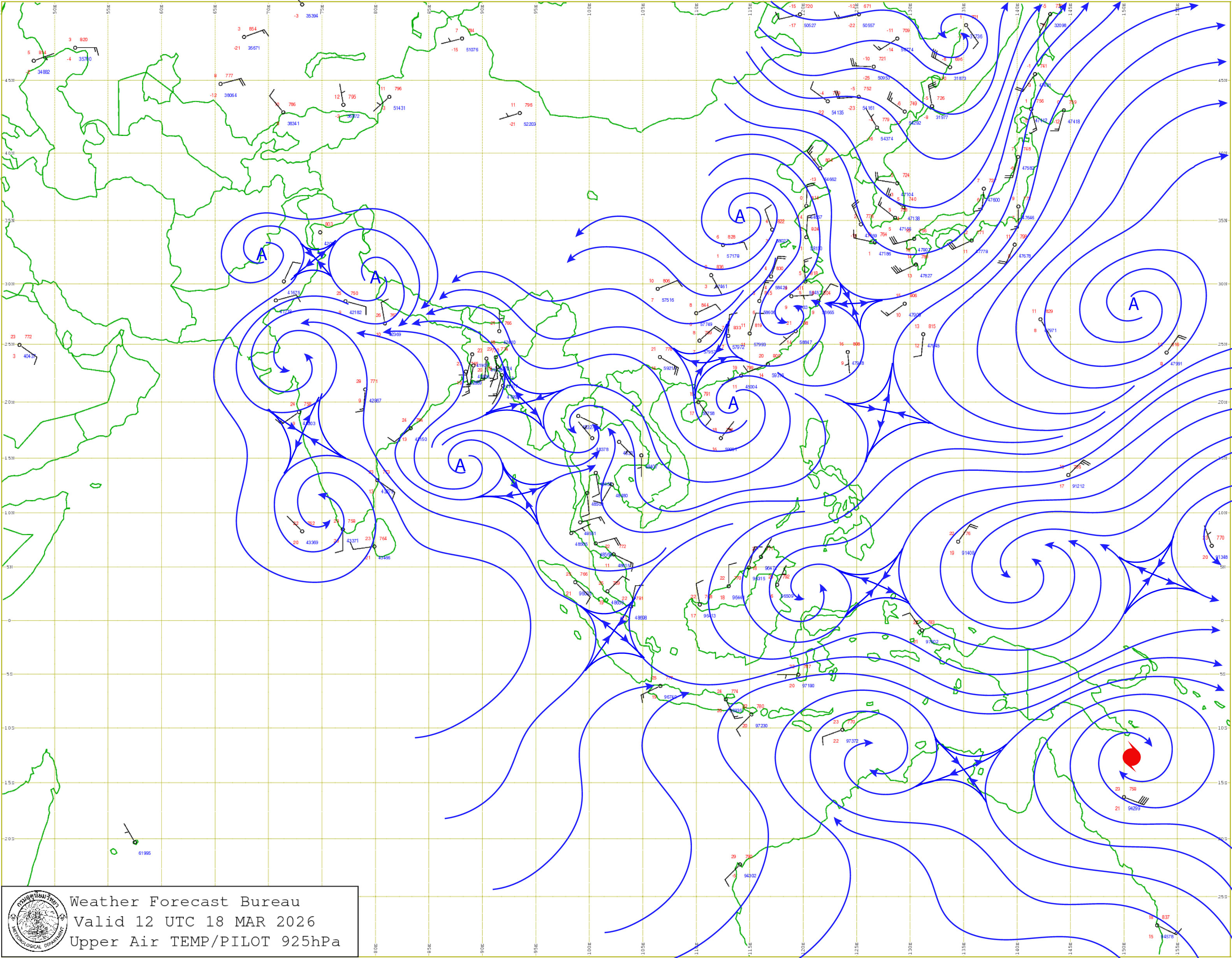 ลักษณะอากาศทั่วไป : พยากรณ์อากาศ 24 ชั่วโมงข้างหน้า ประเทศไทยตอนบนมีอากาศร้อนในตอนกลางวัน แต่ยังคงมีฝนฟ้าคะนองบางแห่ง ส่วนมากบริเวณภาคเหนือตอนล่าง ภาคกลาง และภาคตะวันออก เนื่องจากความกดอากาศต่ำเนื่องจากความร้อนปกคลุมประเทศไทยตอนบน ในขณะที่มีลมใต้และลมตะวันออกเฉียงใต้พัดนำความชื้นจากทะเลจีนใต้และอ่าวไทยเข้ามาปกคลุมบริเวณประเทศไทยตอนบน ขอให้ประชาชนบริเวณประเทศไทยตอนบนดูแลรักษาสุขภาพ เนื่องจากสภาพอากาศที่ร้อน และระวังอันตรายจากฝนฟ้าคะนอง