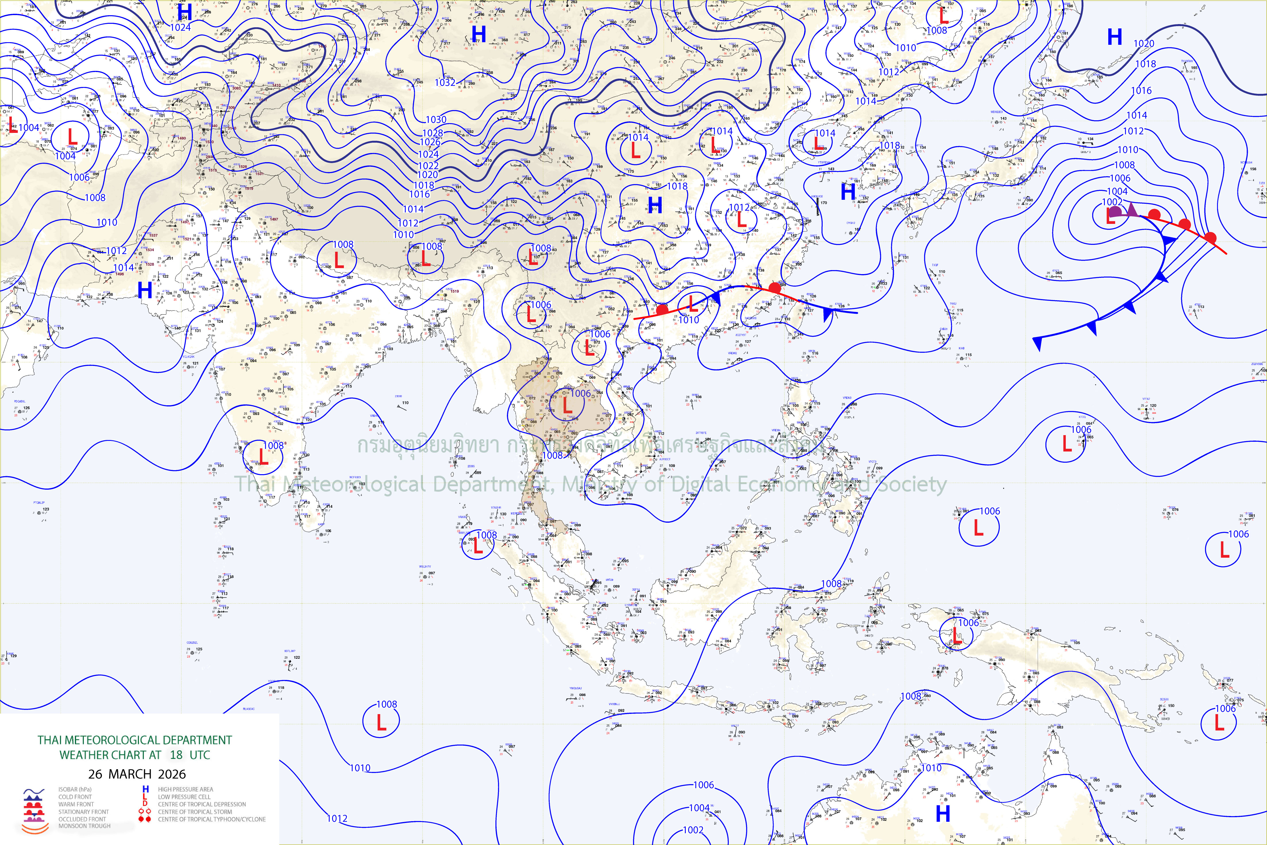 ลักษณะอากาศทั่วไป : พยากรณ์อากาศ 24 ชั่วโมงข้างหน้า ประเทศไทยมีอากาศร้อนโดยทั่วไป กับมีฟ้าหลัวในตอนกลางวัน และมีอากาศร้อนจัดบางพื้นที่ในภาคเหนือ ภาคตะวันออกเฉียงเหนือ และภาคกลาง โดยมีฝนฟ้าคะนอง กับมีลมกระโชกแรงบางแห่ง เนื่องจากความกดอากาศต่ำเนื่องจากความร้อนปกคลุมประเทศไทยตอนบน ในขณะที่มีลมใต้และลมตะวันออกเฉียงใต้กำลังอ่อนพัดปกคลุมในบริเวณดังกล่าว ขอให้ประชาชนบริเวณประเทศไทยดูแลรักษาสุขภาพเนื่องจากสภาพอากาศที่ร้อนถึงร้อนจัด โดยหลีกเลี่ยงการทำงานหรือการประกอบกิจกรรมในที่โล่งแจ้งเป็นระยะเวลานาน รวมทั้งระวังอันตรายจากฝนฟ้าคะนองและลมกระโชกแรงที่อาจเกิดขึ้นในบางพื้นที่ไว้ด้วย