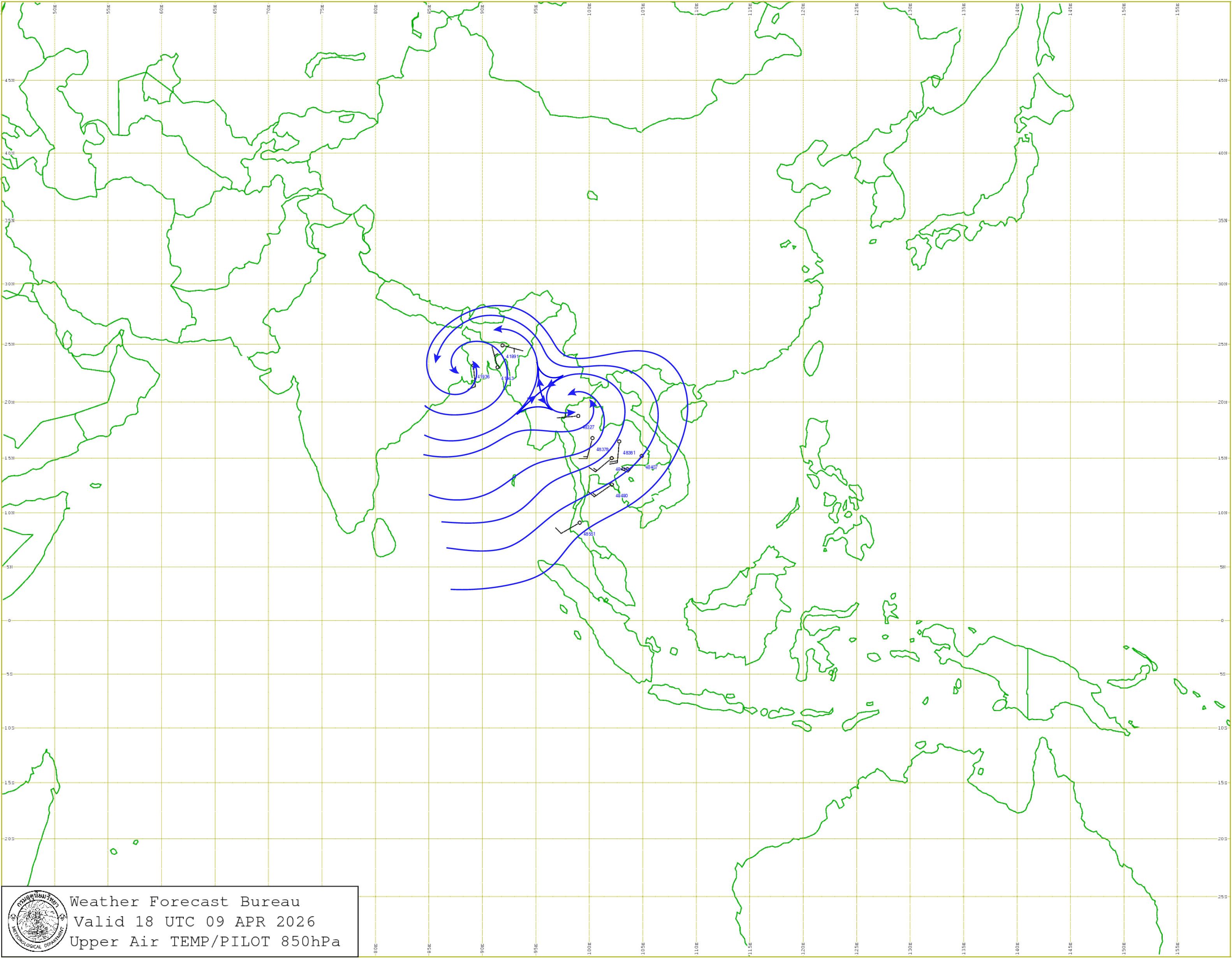 กรุงเทพมหานครและปริมณฑล : อากาศร้อนโดยทั่วไป และมีอากาศร้อนจัดบางพื้นที่ กับมีฟ้าหลัวในตอนกลางวัน อุณหภูมิต่ำสุด 27-28 องศาเซลเซียส อุณหภูมิสูงสุด 36-40 องศาเซลเซียส ลมใต้ ความเร็ว 10-15 กม./ชม.