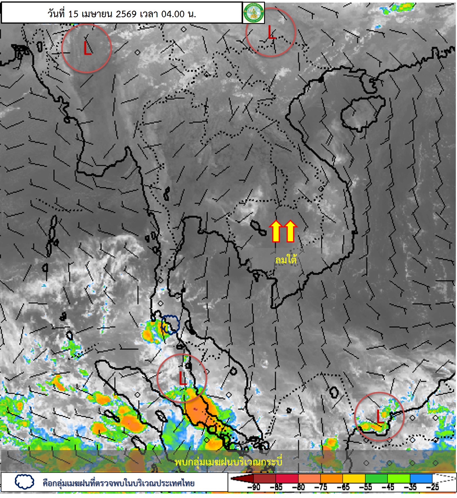 อนึ่ง ในช่วงวันที่ 16-20 เม.ย. 69 ประเทศไทยตอนบนจะมีพายุฤดูร้อนเกิดขึ้น โดยมีลักษณะของพายุฝนฟ้าคะนอง ลมกระโชกแรง และลูกเห็บตกบางแห่ง รวมถึงอาจมีฟ้าผ่าเกิดขึ้นได้บางพื้นที่ โดยจะเริ่มจากภาคตะวันออกเฉียงเหนือก่อน จากนั้นภาคตะวันออก ด้านตะวันออกของภาคกลาง และภาคเหนือตอนล่าง จะได้รับผลกระทบ ในระยะถัดไป เนื่องจากบริเวณความกดอากาศสูงหรือมวลอากาศเย็นจากประเทศจีนจะแผ่ลงมาปกคลุมทะเลจีนใต้ ส่งผลให้ลมใต้และลมตะวันออกเฉียงใต้ที่พัดปกคลุมภาคตะวันออกเฉียงเหนือตอนล่าง และภาคตะวันออกมีกำลังแรงขึ้น ในขณะที่ประเทศไทยตอนบนมีอากาศร้อนถึงร้อนจัด