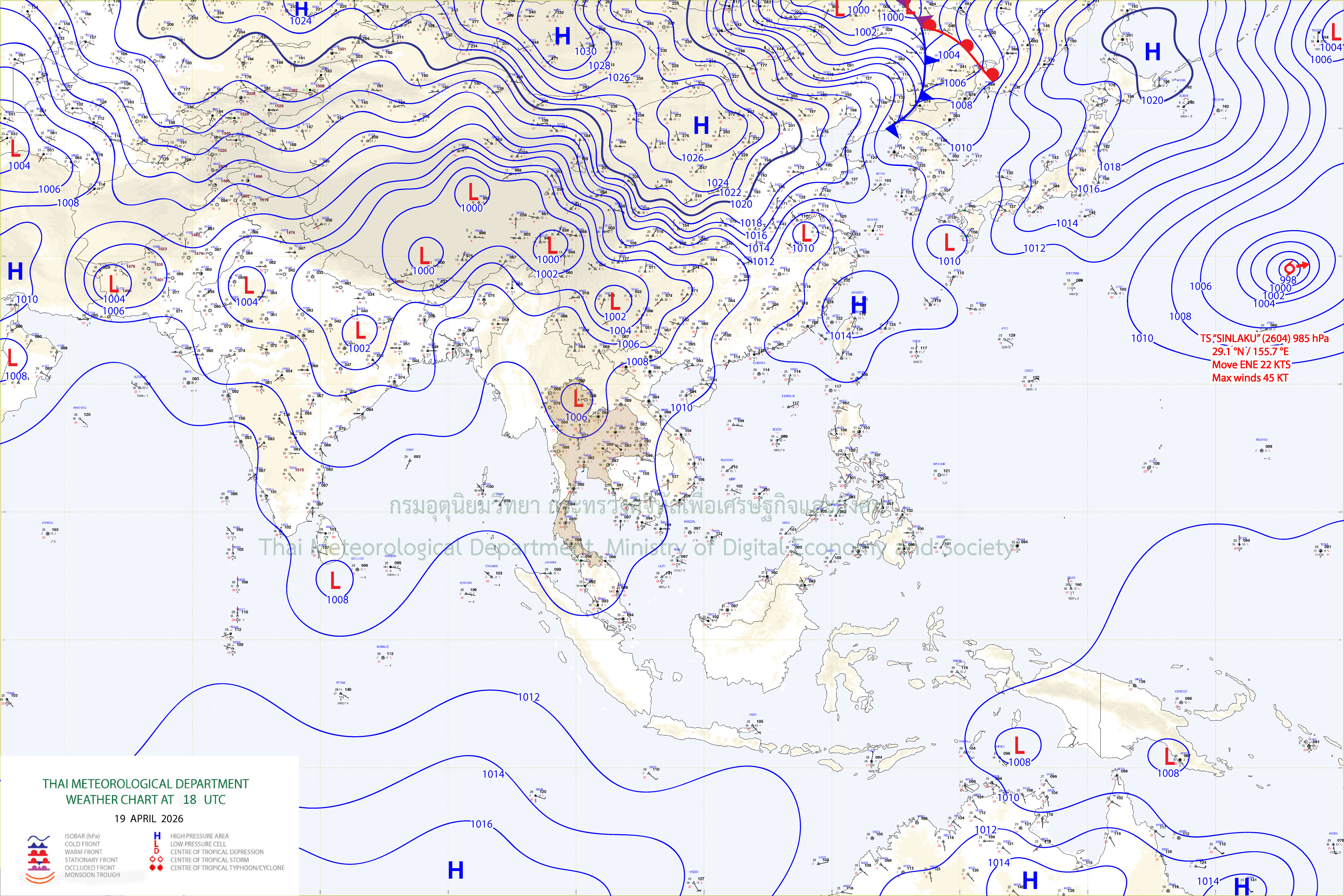 อนึ่ง ในช่วงวันที่ 23–25 เม.ย. 2569 ประเทศไทยตอนบนจะมีพายุฤดูร้อนเกิดขึ้น โดยมีลักษณะของพายุฝนฟ้าคะนอง ลมกระโชกแรง และลูกเห็บตกบางแห่ง รวมถึงอาจมีฟ้าผ่าเกิดขึ้นได้ โดยจะเริ่มจากภาคเหนือ และตะวันออกเฉียงเหนือก่อน จากนั้นภาคกลาง และภาคตะวันออกจะได้รับผลกระทบในระยะถัดไป เนื่องจากบริเวณความกดอากาศสูงหรือมวลอากาศเย็นจากประเทศจีนอีกระลอกหนึ่งจะแผ่ลงมาปกคลุมทะเลจีนใต้ และภาคตะวันออกเฉียงเหนือ ในขณะที่ประเทศไทยตอนบนมีอากาศร้อนถึงร้อนจัด