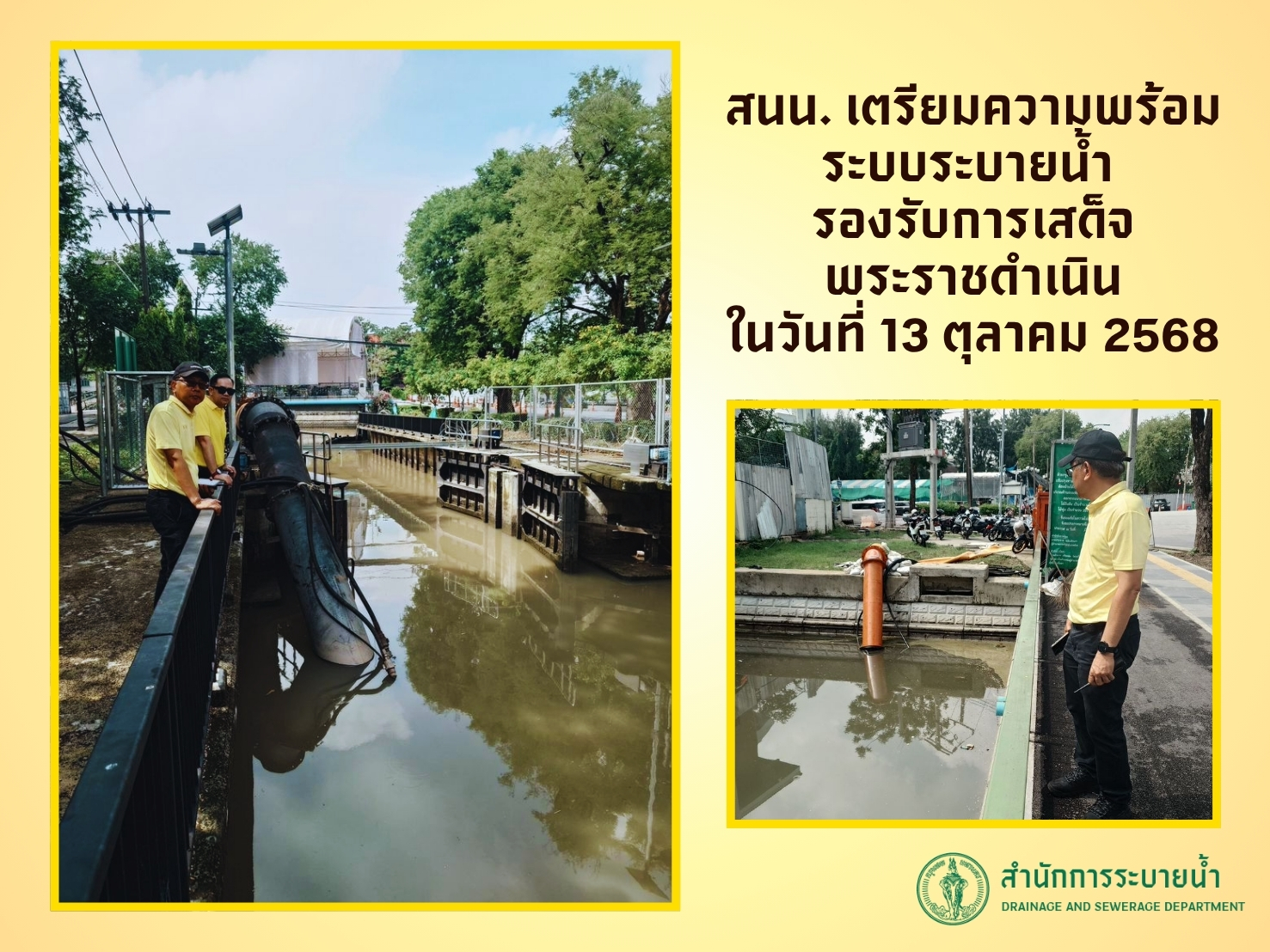 สนน. เตรียมความพร้อมระบบระบายน้ำ รองรับการเสด็จพระราชดำเนินในวันที่ 13 ตุลาคม 2568