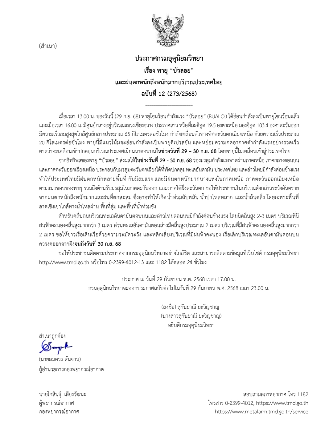 ประกาศกรมอุตุนิยมวิทยา เรื่อง พายุ “บัวลอย” และฝนตกหนักถึงหนักมากบริเวณประเทศไทยตอนบน ฉบับที่ 12 ประกาศกรมอุตุนิยมวิทยา เรื่อง พายุ “บัวลอย” และฝนตกหนักถึงหนักมากบริเวณประเทศไทยตอนบน ฉบับที่ 12 ประกาศกรมอุตุนิยมวิทยา เรื่อง พายุ “บัวลอย” และฝนตกหนักถึงหนักมากบริเวณประเทศไทยตอนบน ฉบับที่ 12