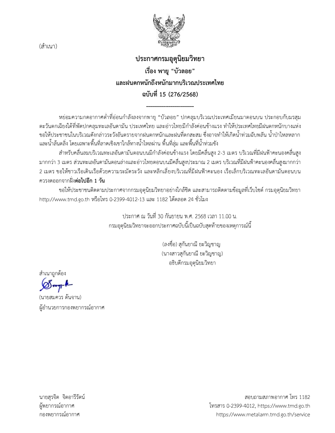 ประกาศกรมอุตุนิยมวิทยา เรื่อง พายุ “บัวลอย” และฝนตกหนักถึงหนักมากบริเวณประเทศไทยตอนบน ฉบับที่ 15 ประกาศกรมอุตุนิยมวิทยา เรื่อง พายุ “บัวลอย” และฝนตกหนักถึงหนักมากบริเวณประเทศไทยตอนบน ฉบับที่ 15 ประกาศกรมอุตุนิยมวิทยา เรื่อง พายุ “บัวลอย” และฝนตกหนักถึงหนักมากบริเวณประเทศไทยตอนบน ฉบับที่ 15